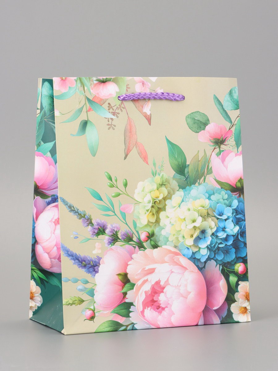 Пакет подарочный ламинированный "Цветы и Радость" 18x22.3x10 см, АРТ ДИЗАЙН, Китай