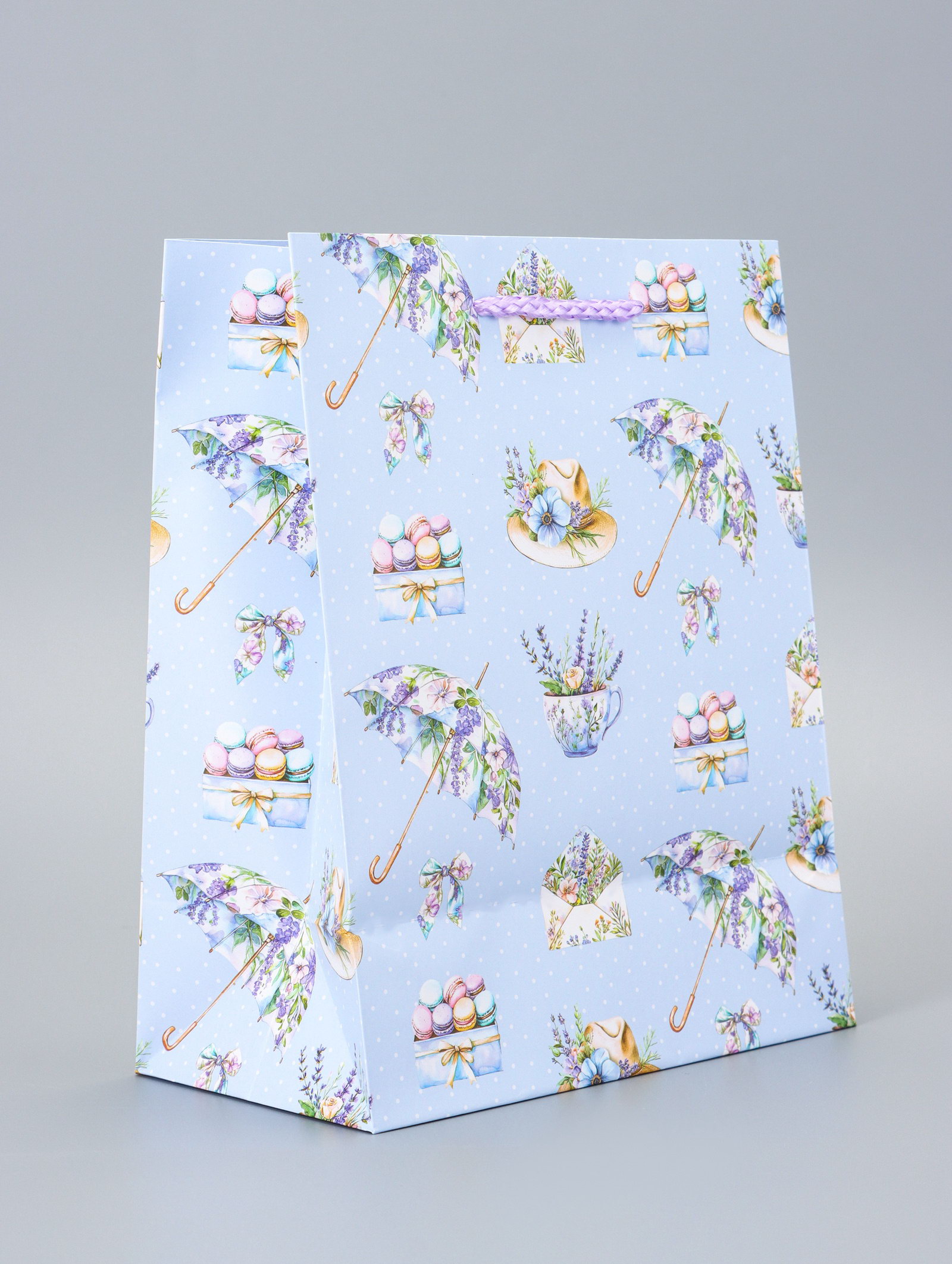Вид: Бумажный пакет, Подарочная упаковка Тематика праздника: 14 Февраля, 8 Марта, День рождения, Универсальная тематика Тематика: Женская, Цветочно-растительная Для кого: Для девочки, Для женщины Размер упаковки: 18 x 0.2 x 22.3 см. tnved: 4819300000 Вид ручки: Ручка-шнур Расширение: Боковая складка Отделка пакета: Ламинация Символ года: Нет Плотность, г/?2: 180 Рисунок: Да Температурное ограничение: Нет Цвет: Голубой Примерный размер: M (~ 17см x 23см) Дизайн: С рисунком, надписью Форма: Прямоугольная Ширина, см: 10 Высота, см: 22.3 Форма пакета: Вертикальный Длина, см: 18 Подарочный пакет "Зонтик" это ламинированная упаковка среднего размера с нежным голубым фоном и романтичным рисунком. Изящный принт создает ощущение легкости и заботы, делая презент визуально привлекательным.