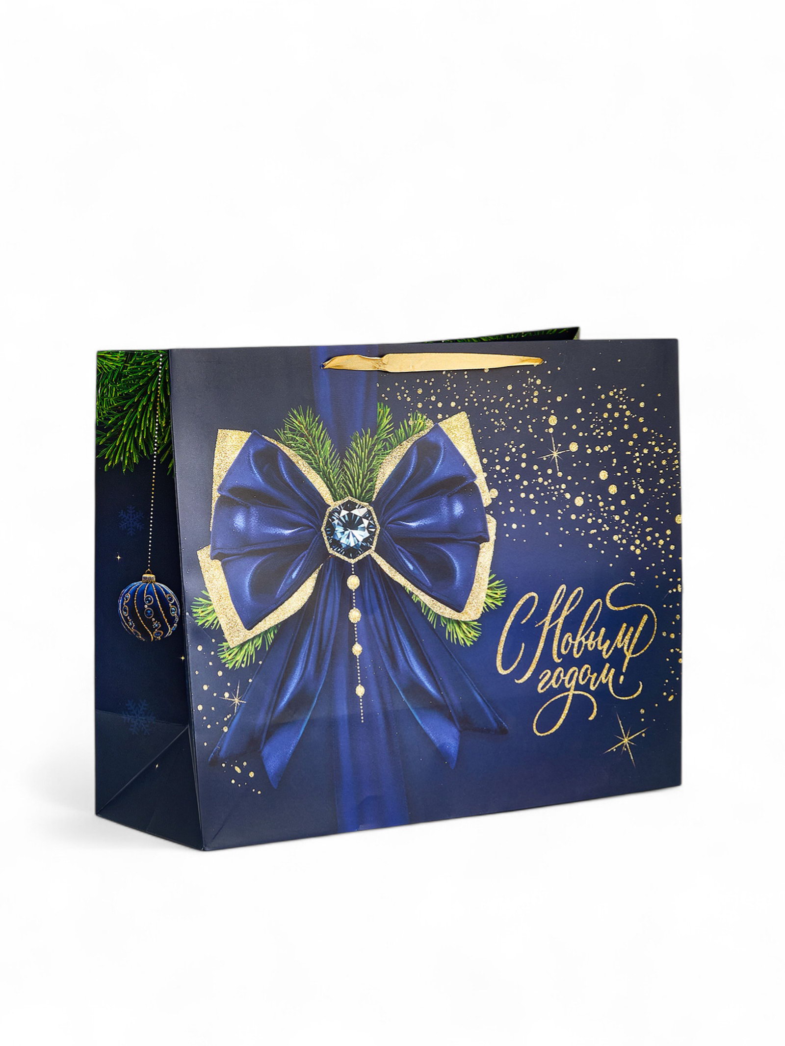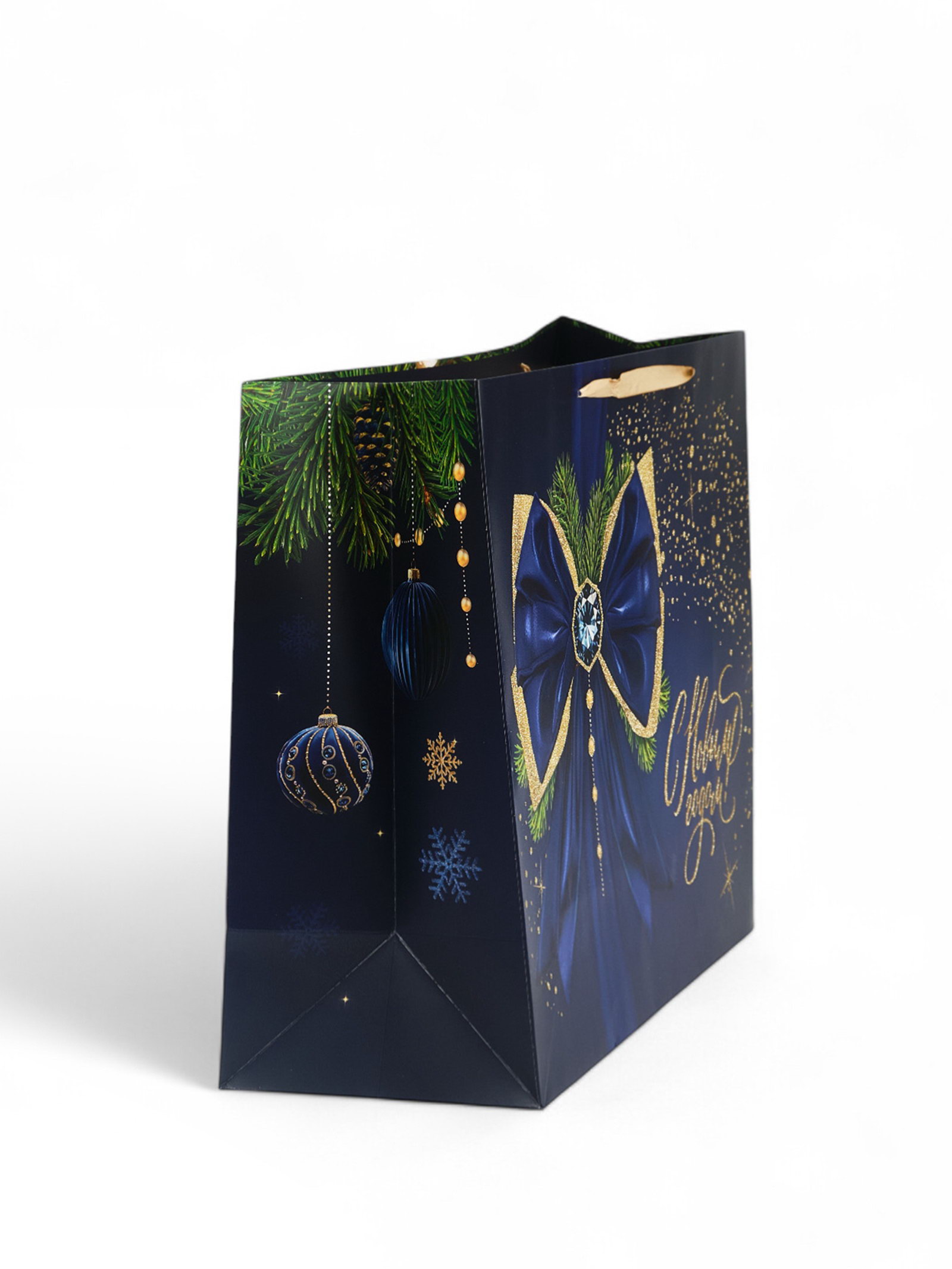 Пакет новогодний подарочный ламинированный "Синий", XL 49x40x19 см, 40x49x19 см., Дарите Счастье, Китай
