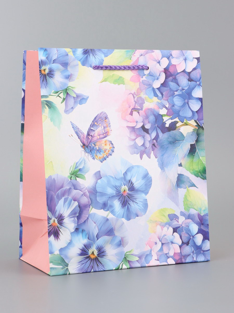 Пакет подарочный ламинированный вертикальный "Мир фиалок", 18x22.3x10 см, Китай