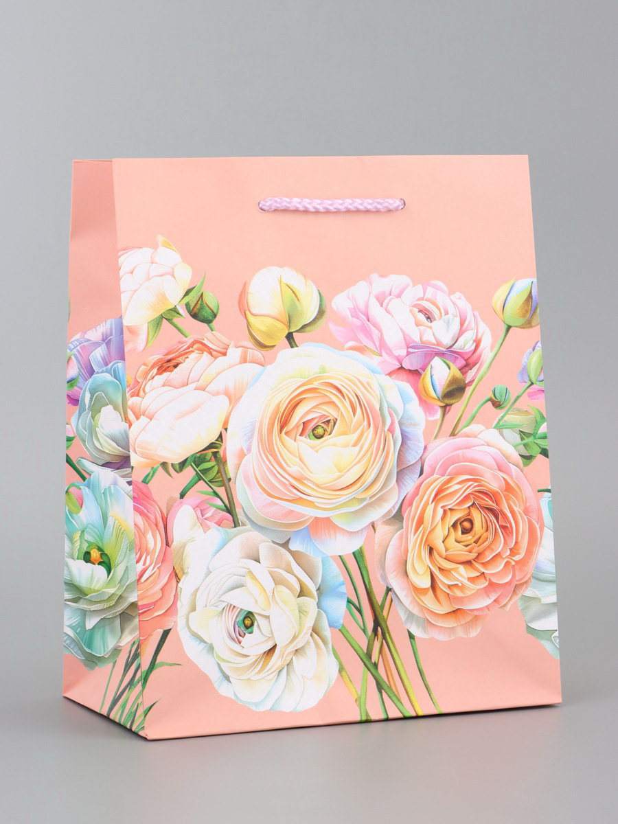 Пакет подарочный ламинированный вертикальный "Цветочная роспись", 18x22.3x10 см, Китай