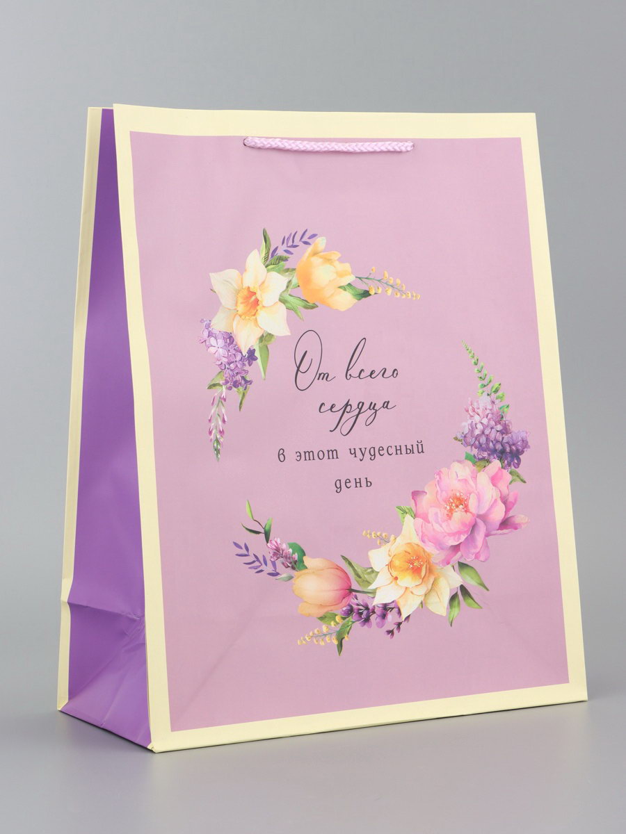 Пакет подарочный ламинированный вертикальный "Фиолетовое настроение", 26x12x32 см, Китай