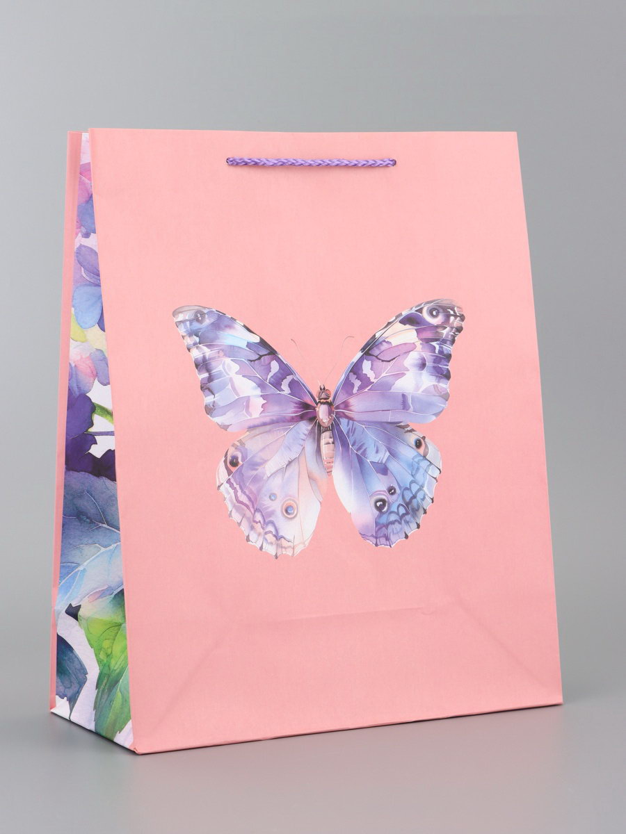 Пакет подарочный ламинированный вертикальный "Портрет бабочки" 26x12x32 см, Китай