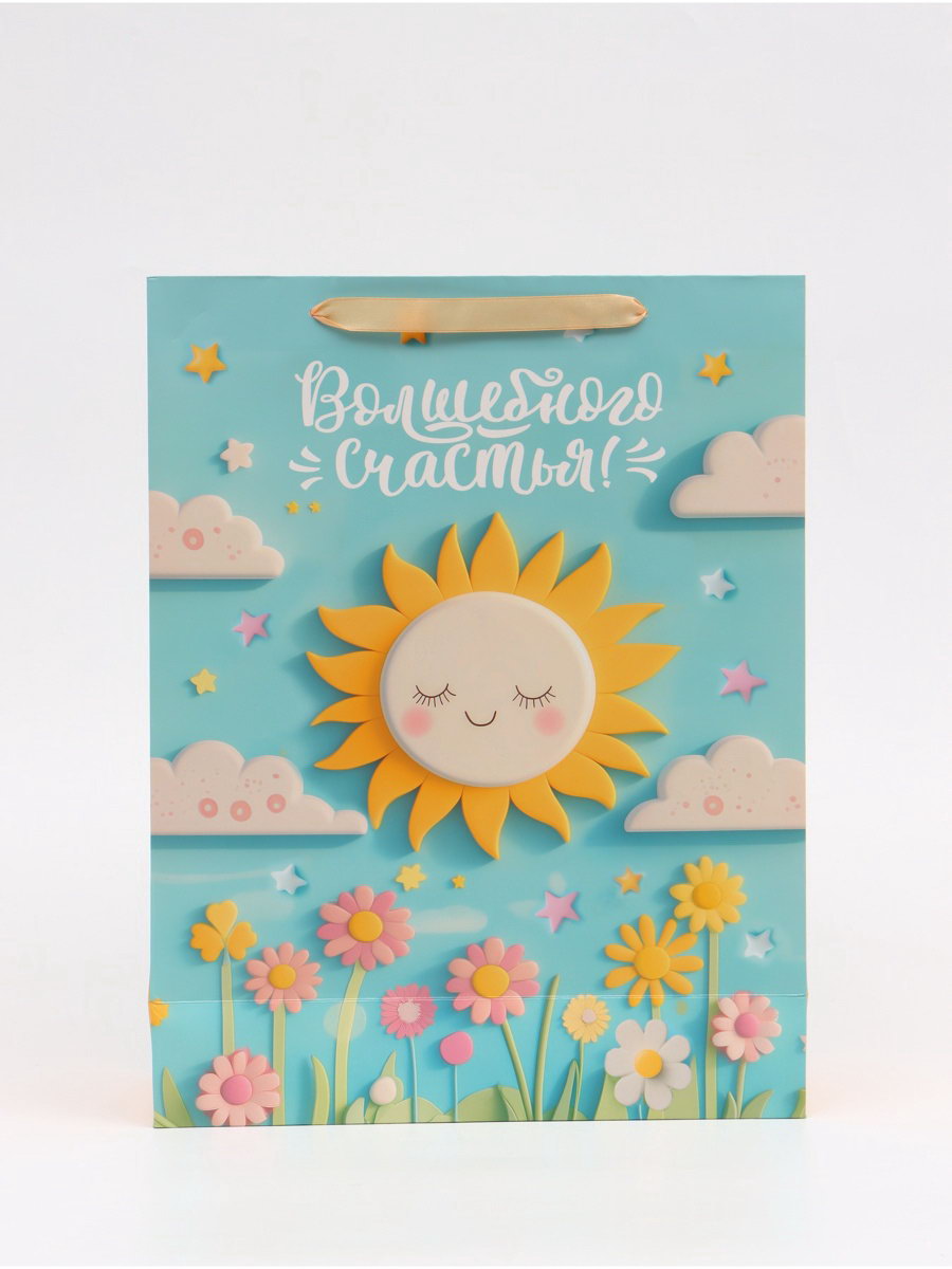 Дом Подарка › Каталог › Упаковка › Подарочная упаковка › Подарочные пакеты › Ламинированные пакеты › Пакет подарочный "Солнышко", L 31 x 40 x 11.5 см