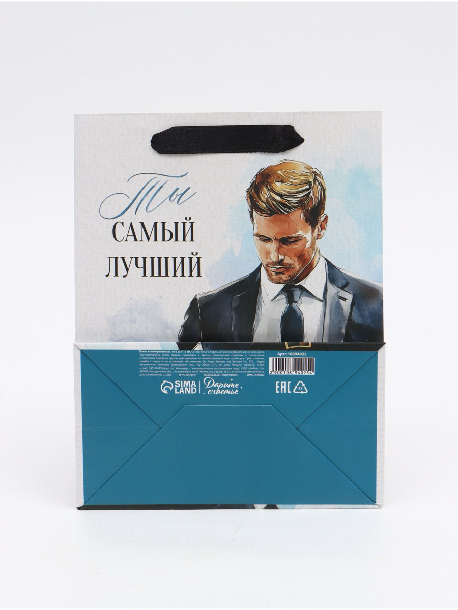 Пакет подарочный "Самый лучший", MS 18 x 23 x 10 см, 10x18x23 см., Дарите Счастье, Китай