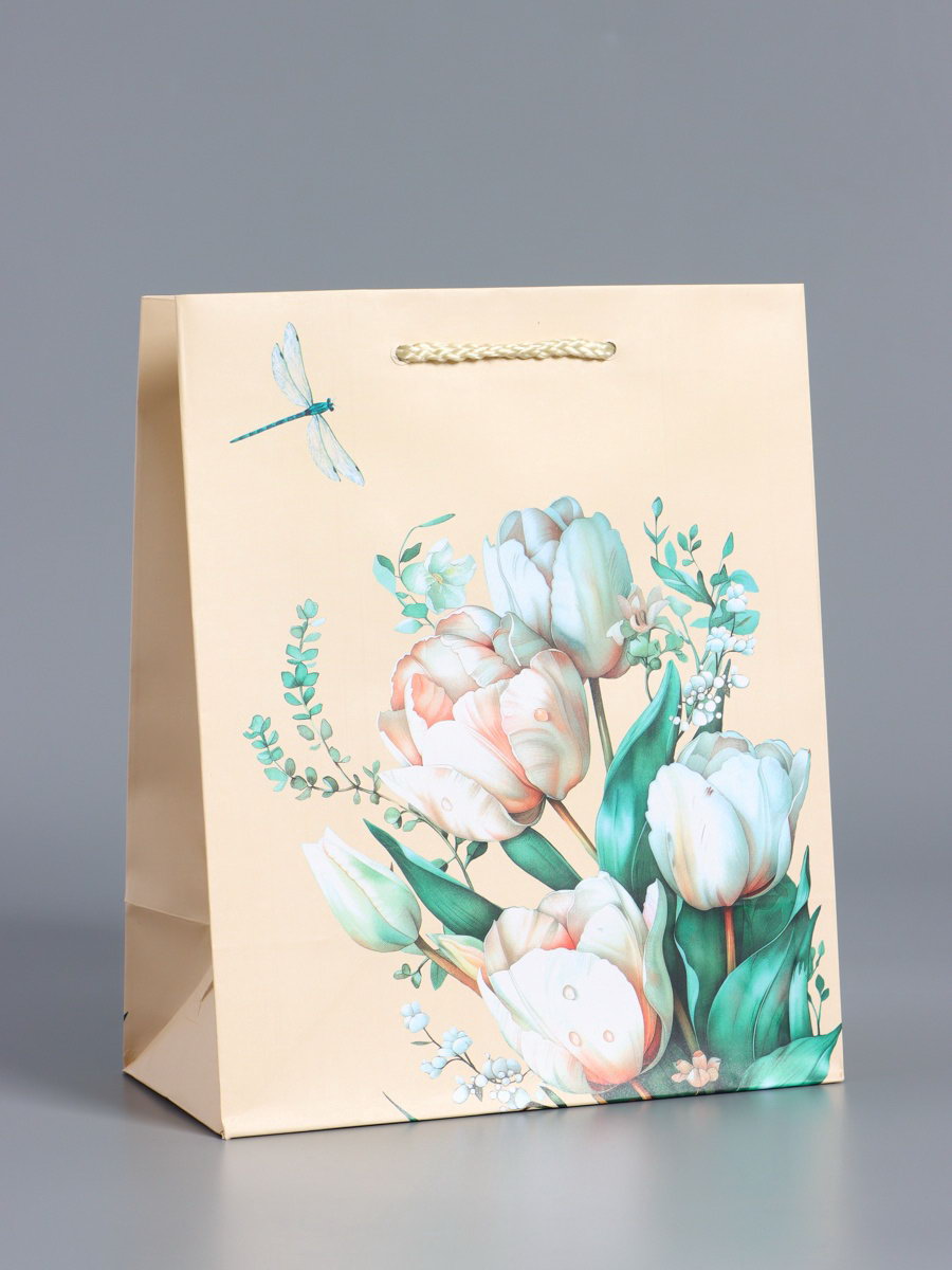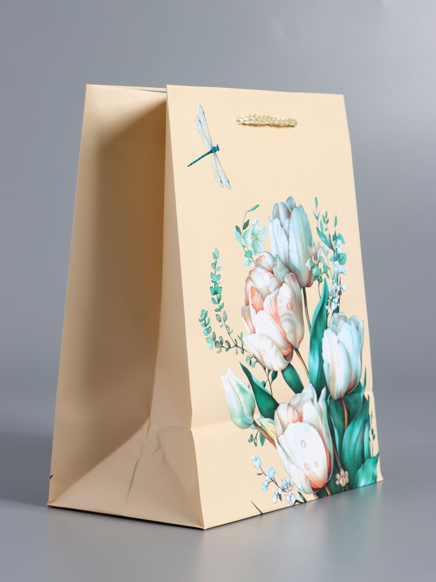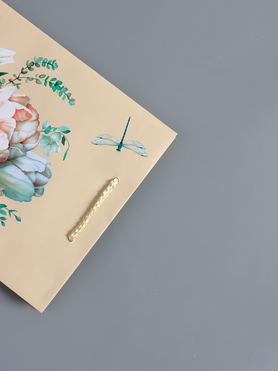 Пакет подарочный ламинированный "Стрекоза", пудровый, 18x22.3x10 см, АРТ ДИЗАЙН, Китай