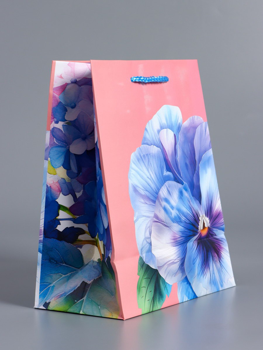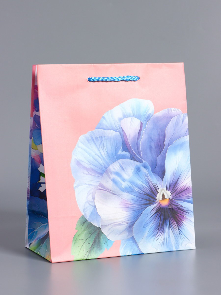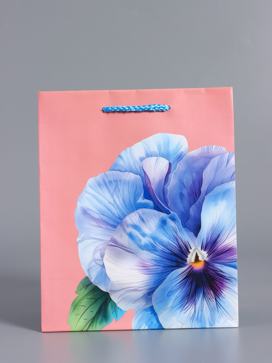Пакет подарочный ламинированный, "Взгляд фиалки", нежно розовый, 18x22.3x10 см, АРТ ДИЗАЙН, Китай