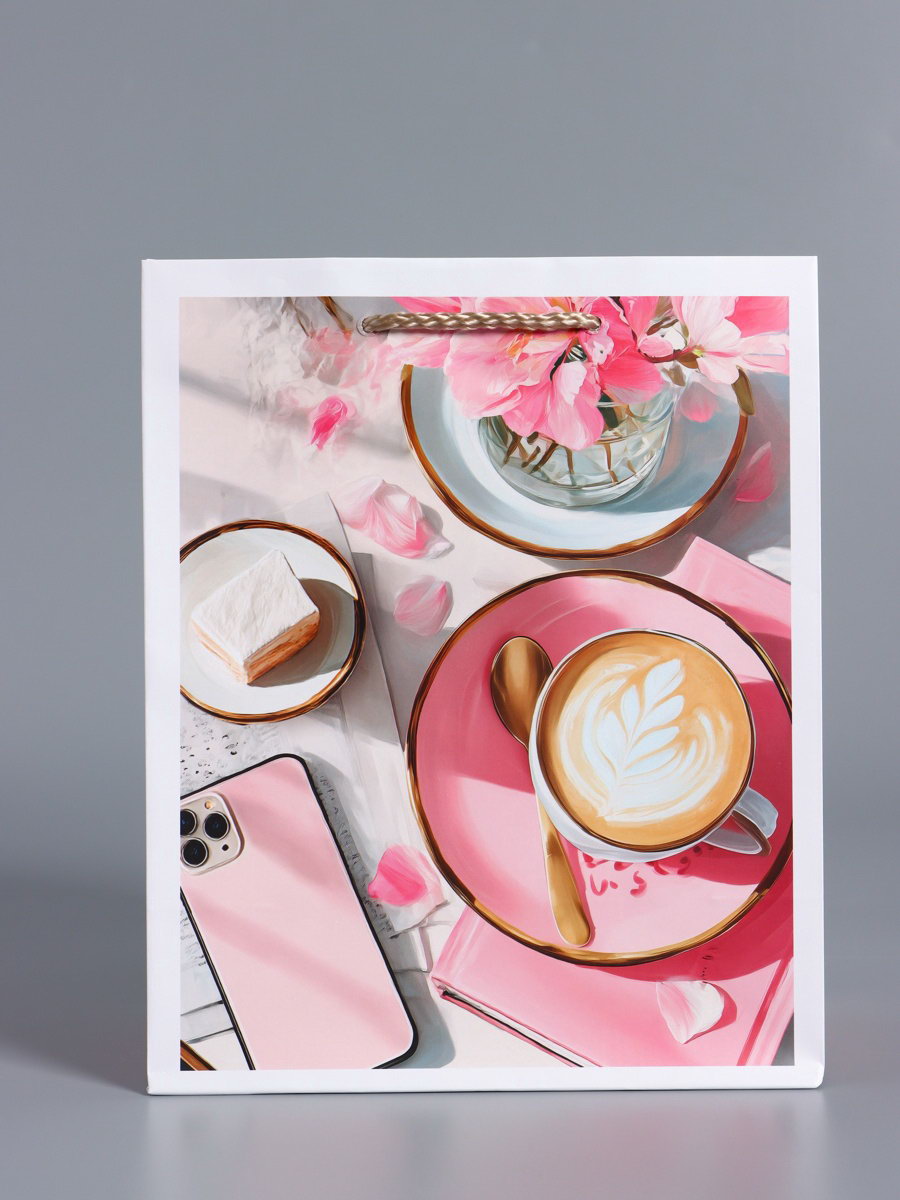 Цвет: Разноцветный, Розовый Тематика: Женская, Напитки, Сладости, Цветочно-растительная Тематика праздника: 14 Февраля, 8 Марта, Универсальная тематика Для кого: Для девочки, Для женщины Размер упаковки: 18 x 0.4 x 22.3 см. tnved: 4819300000 Температурное ограничение: Нет Дизайн: С рисунком, надписью Отделка пакета: Ламинация Вид ручки: Ручка-шнур Плотность, г/?2: 180 Примерный размер: M (~ 17см x 23см) Рисунок: Да Форма: Прямоугольная Расширение: Боковая складка Вид: Бумажный пакет Высота, см: 22.3 Ширина, см: 10 Форма пакета: Вертикальный Длина, см: 18 Подарок для идеального утра. Ламинированный подарочный пакет "Идеальный завтрак" это упаковка для подарков, которые делают начало дня особенным. Милый и аппетитный дизайн с круассаном, чашкой кофе и цветами создаёт тёплую, уютную атмосферу.