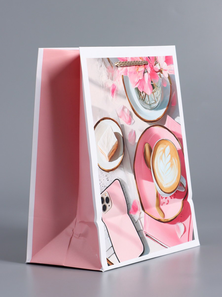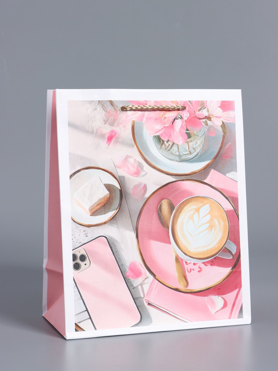 Пакет подарочный ламинированный, "Идеальный завтрак", розовый, 18x22.3x10 см, АРТ ДИЗАЙН, Китай