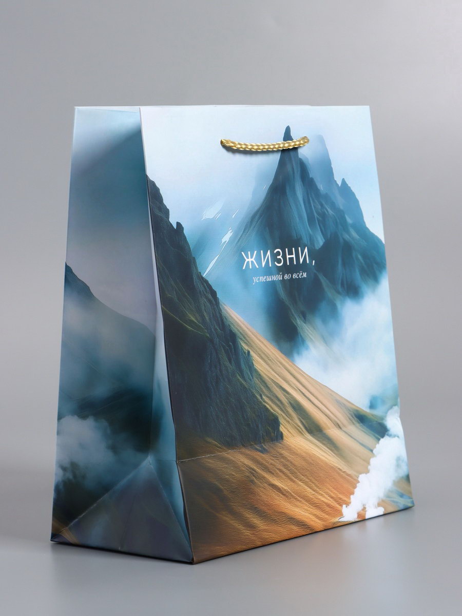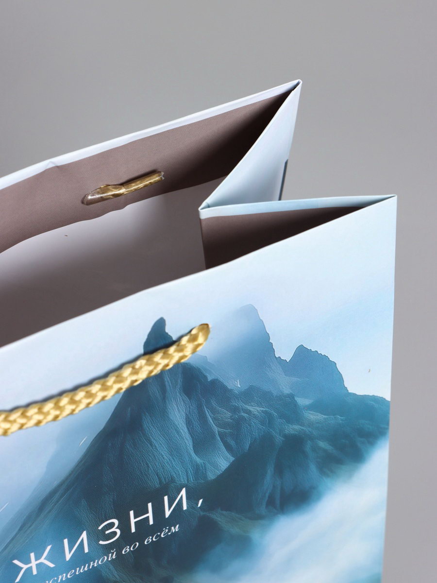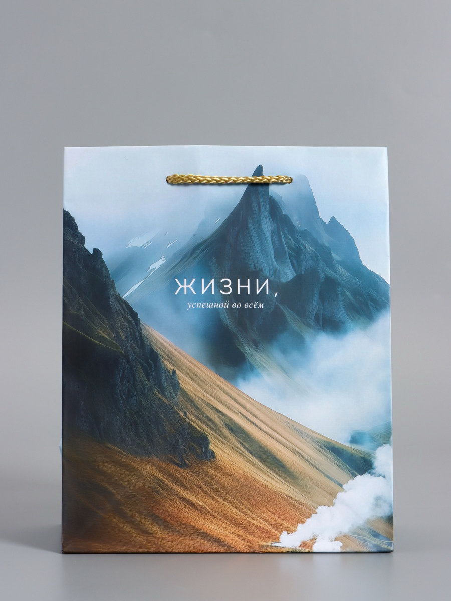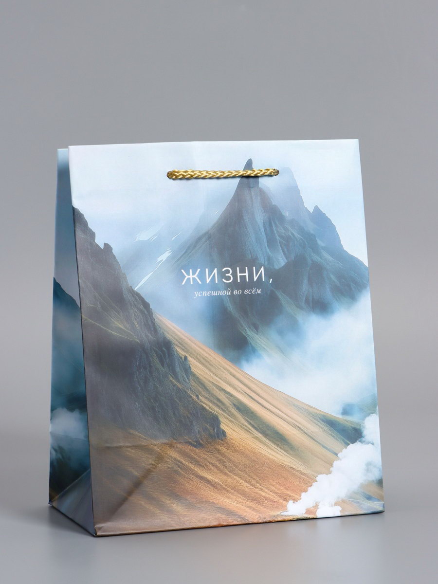 Пакет подарочный ламинированный "Горы счастья", серый с голубым, 18x22.3x10 см, АРТ ДИЗАЙН, Китай
