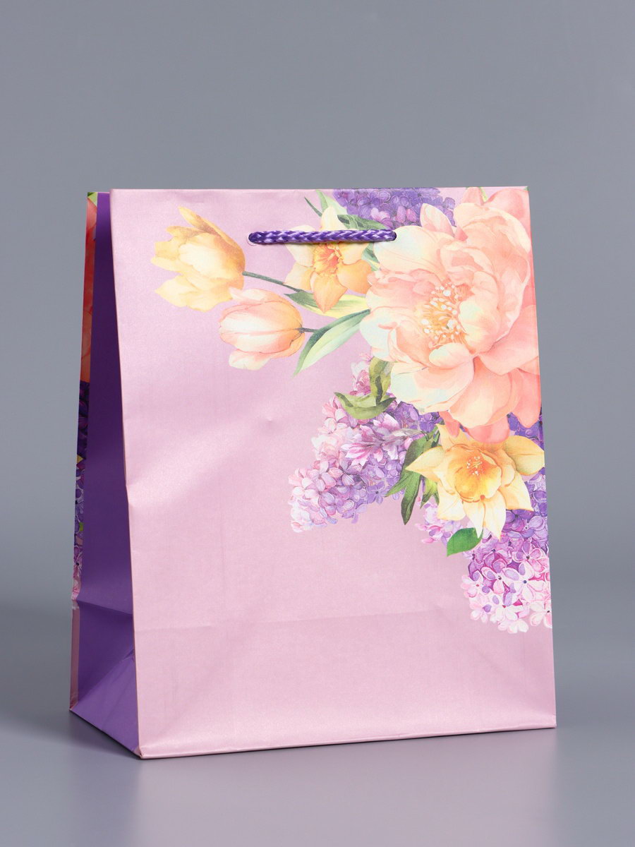 Цвет: Разноцветный, Сиреневый Для кого: Для девочки, Для женщины Тематика: Женская, Цветочно-растительная Тематика праздника: 14 Февраля, 8 Марта, Универсальная тематика Размер упаковки: 18 x 0.4 x 22.3 см. tnved: 4819300000 Температурное ограничение: Нет Вид ручки: Ручка-шнур Отделка пакета: Ламинация Плотность, г/?2: 180 Дизайн: С рисунком, надписью Примерный размер: M (~ 17см x 23см) Рисунок: Да Расширение: Боковая складка Форма: Прямоугольная Вид: Бумажный пакет Форма пакета: Вертикальный Ширина, см: 10 Длина, см: 18 Высота, см: 22.3 Ламинированный подарочный пакет "Особенный знак внимания" это упаковка, подчёркивающая исключительность момента. Глубокий пурпурно-сиреневый цвет и изящные цветочные акценты создают атмосферу ценного и продуманного жеста.