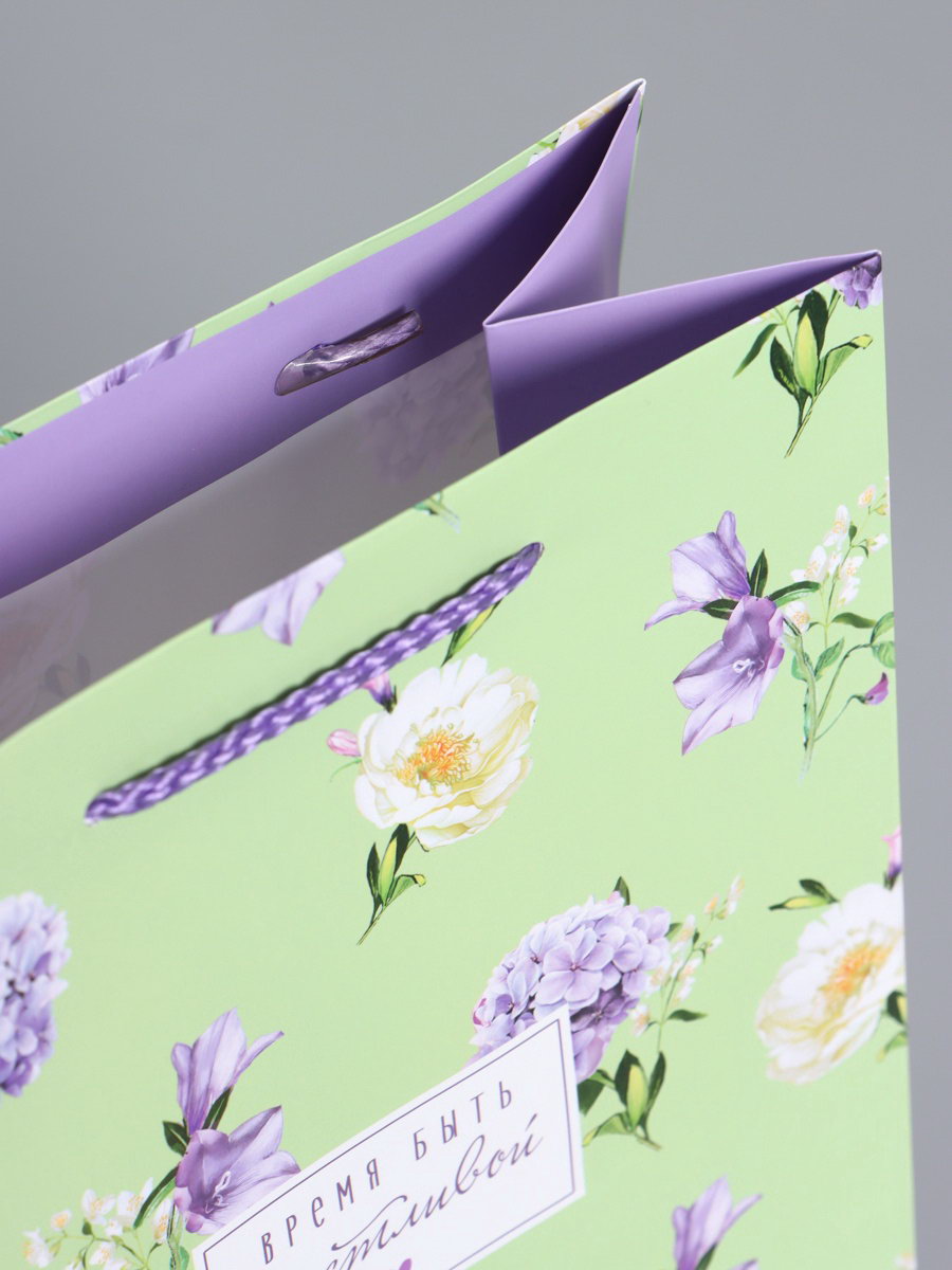 Пакет подарочный ламинированный "Нежный штрих", мятный с сиреневым, 18x22.3x10 см, АРТ ДИЗАЙН, Китай