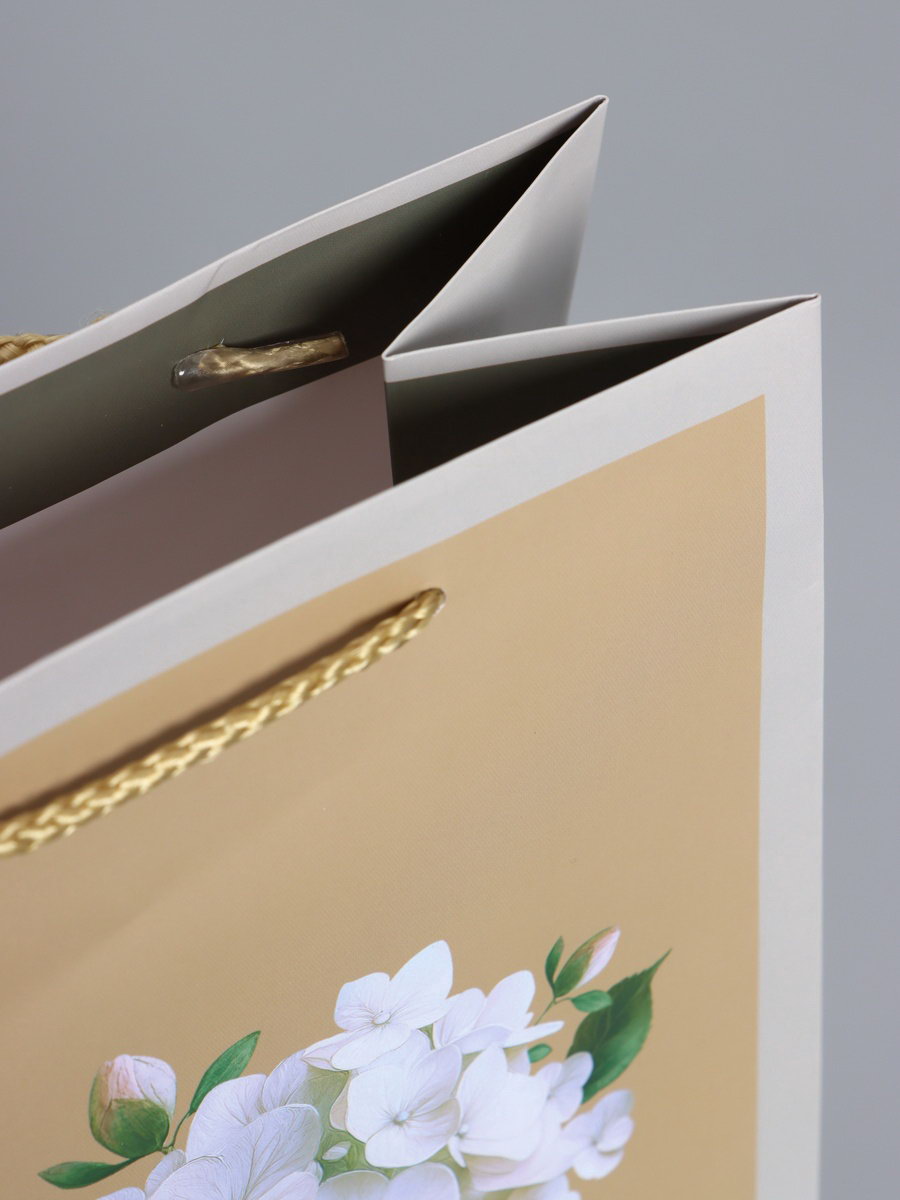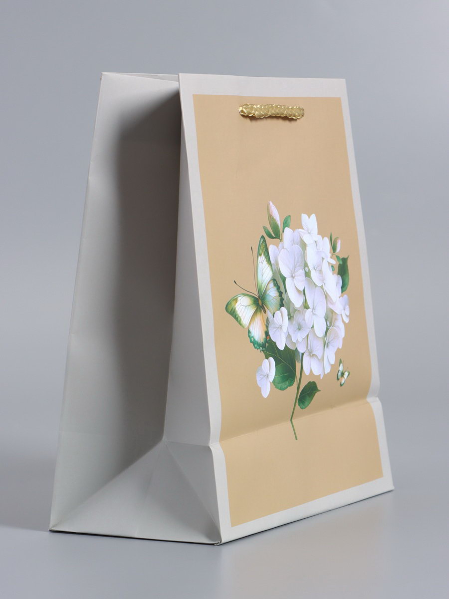 Пакет подарочный ламинированный "Белая гортензия", серо - бежевый, 18x22.3x10 см, АРТ ДИЗАЙН, Китай