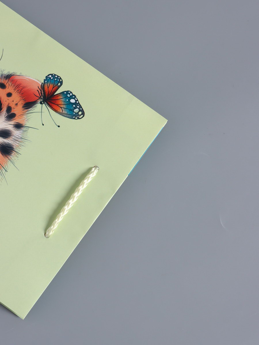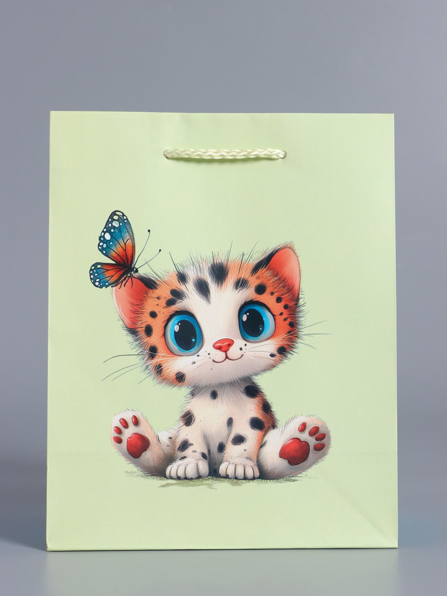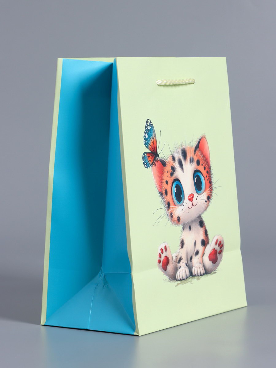 Идеальная подарочная упаковка: Этот пакет превращает вручение подарка в трогательный ритуал. Нежный мятно-голубой фон, детально прорисованные котята и летающие бабочки вызывают улыбку. Пакет не требует дополнительного декора он сам по себе является частью подарка, который запомнится. Выберите эту упаковку, чтобы подчеркнуть искренность вашего внимания. | ||
