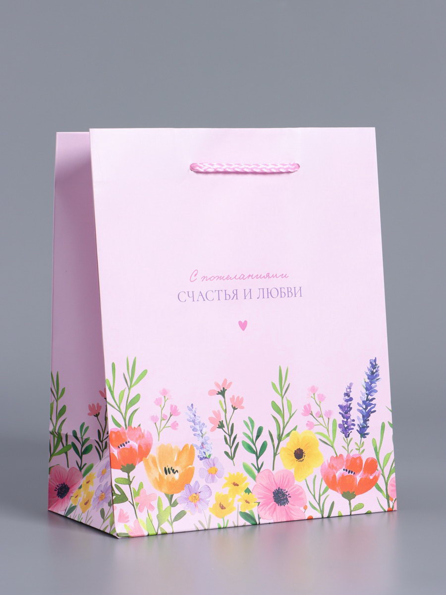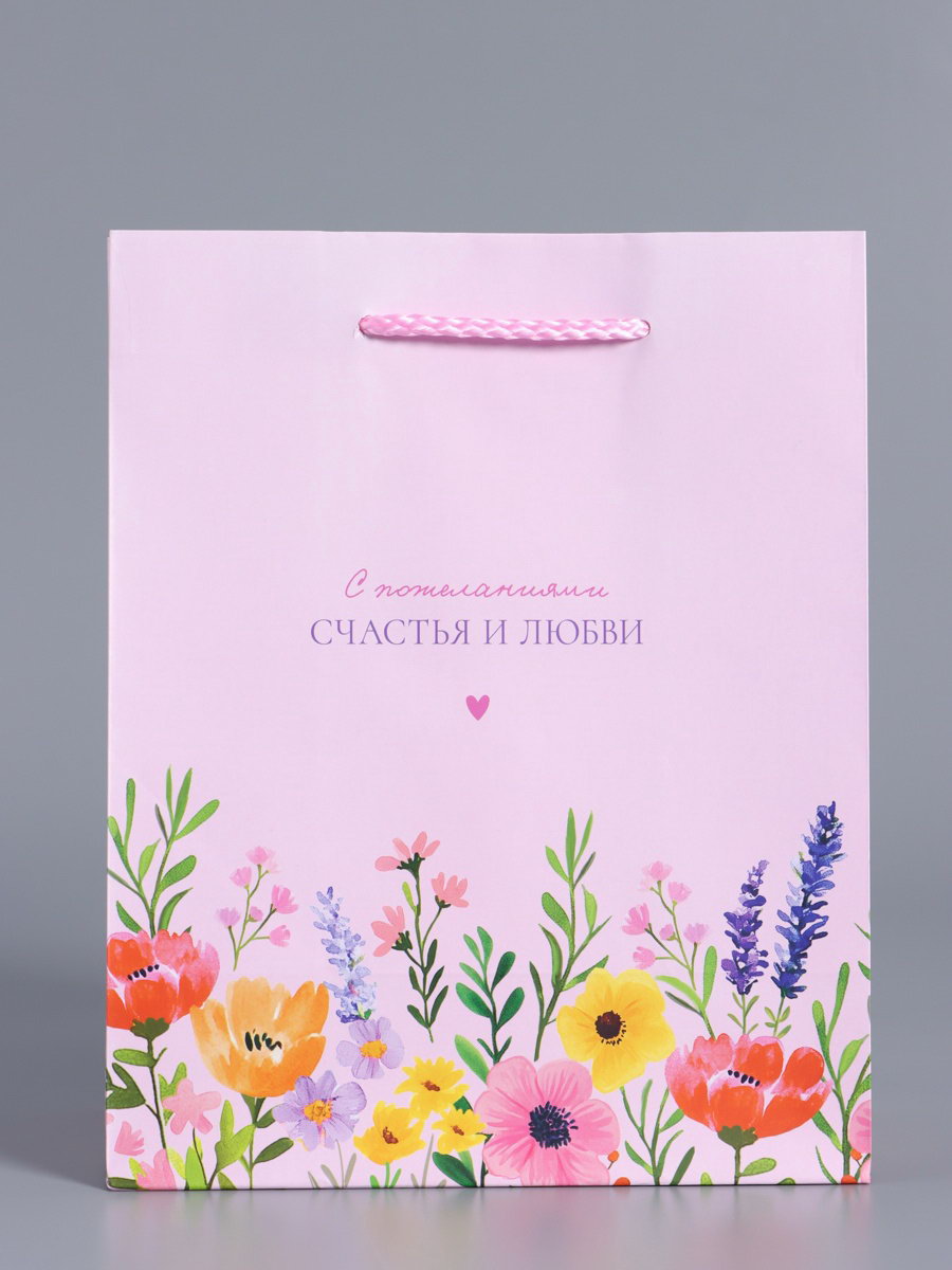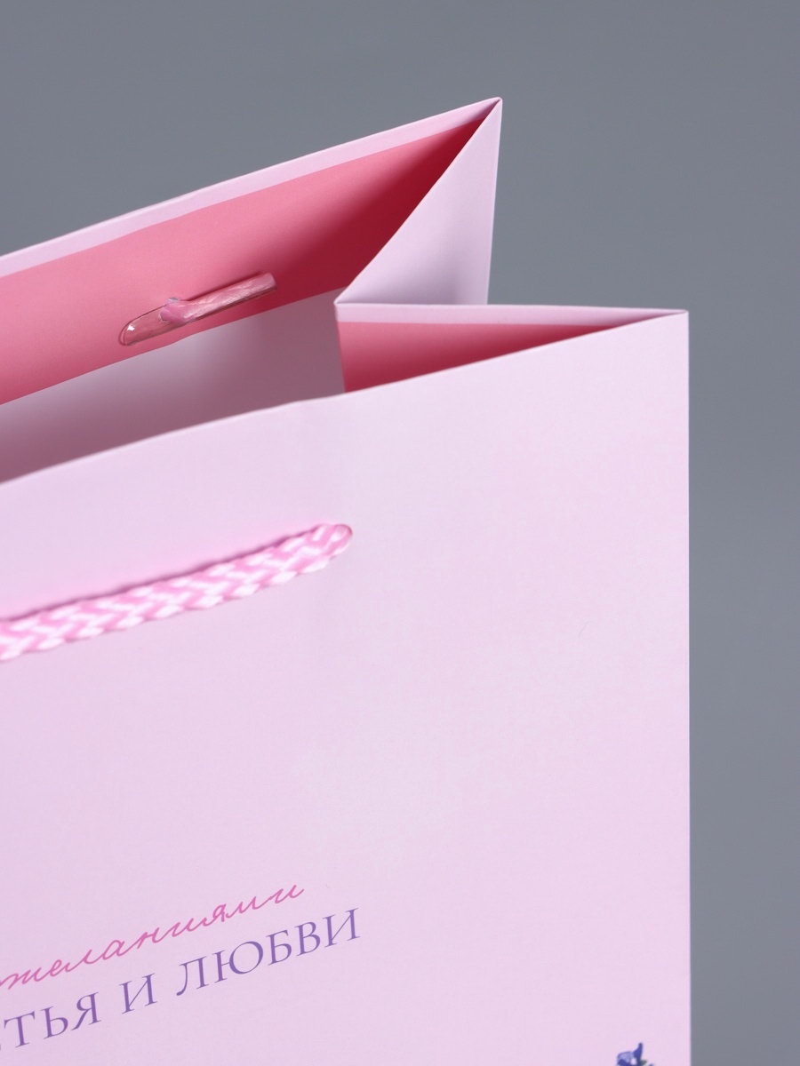 Пакет подарочный ламинированный "С пожеланиями счастья и любви", нежно - розовый, 18x22.3x10 см, АРТ ДИЗАЙН, Китай
