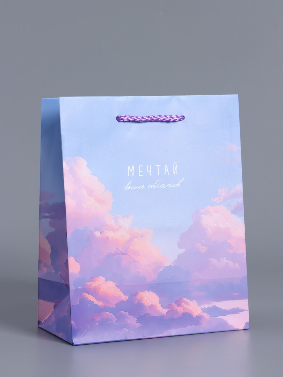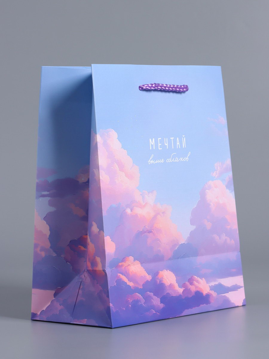 Пакет подарочный ламинированный "Мечтай выше облаков", голубой с сиреневым, 18x22.3x10 см, АРТ ДИЗАЙН, Китай