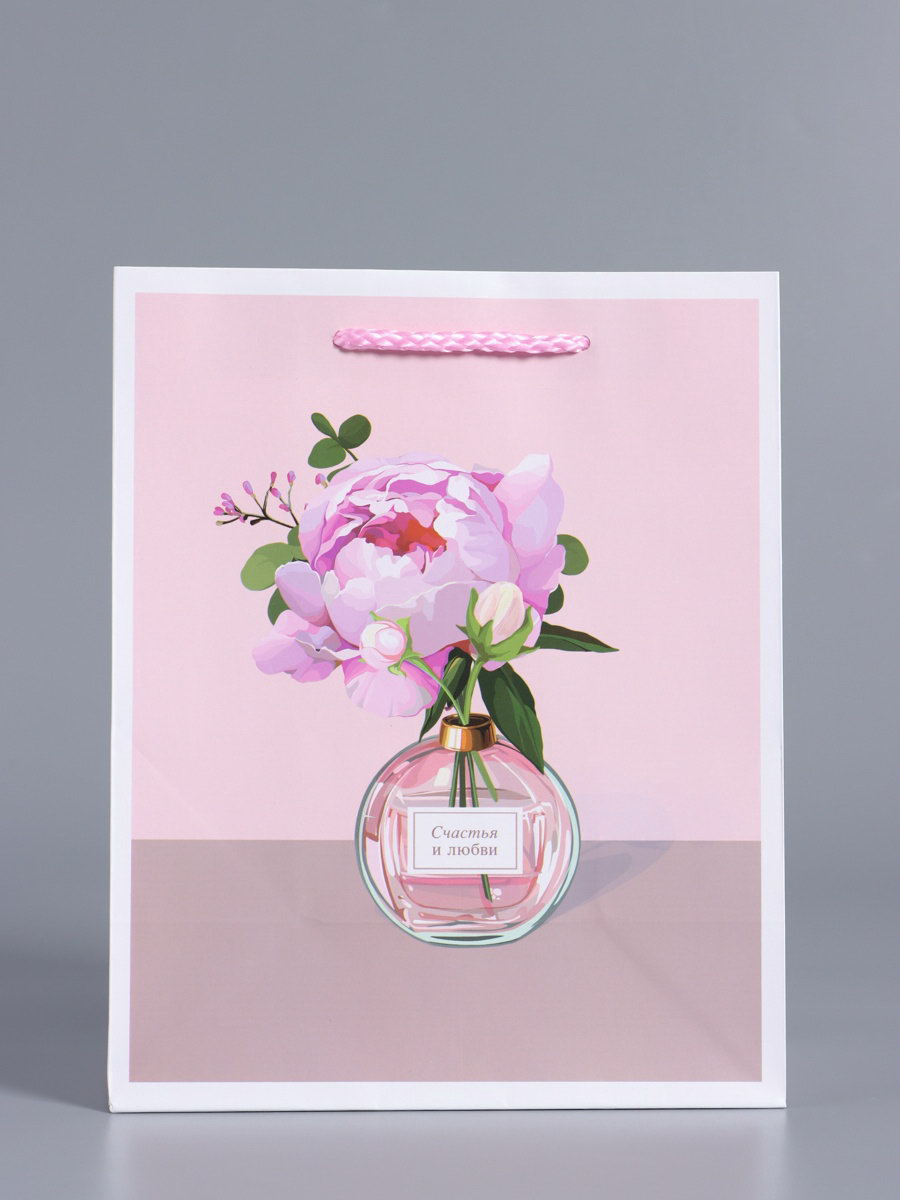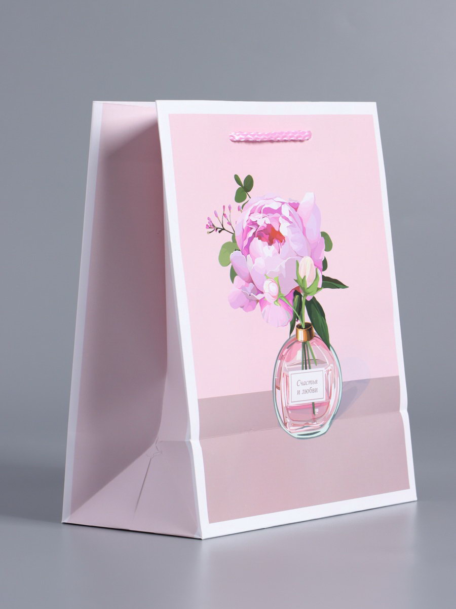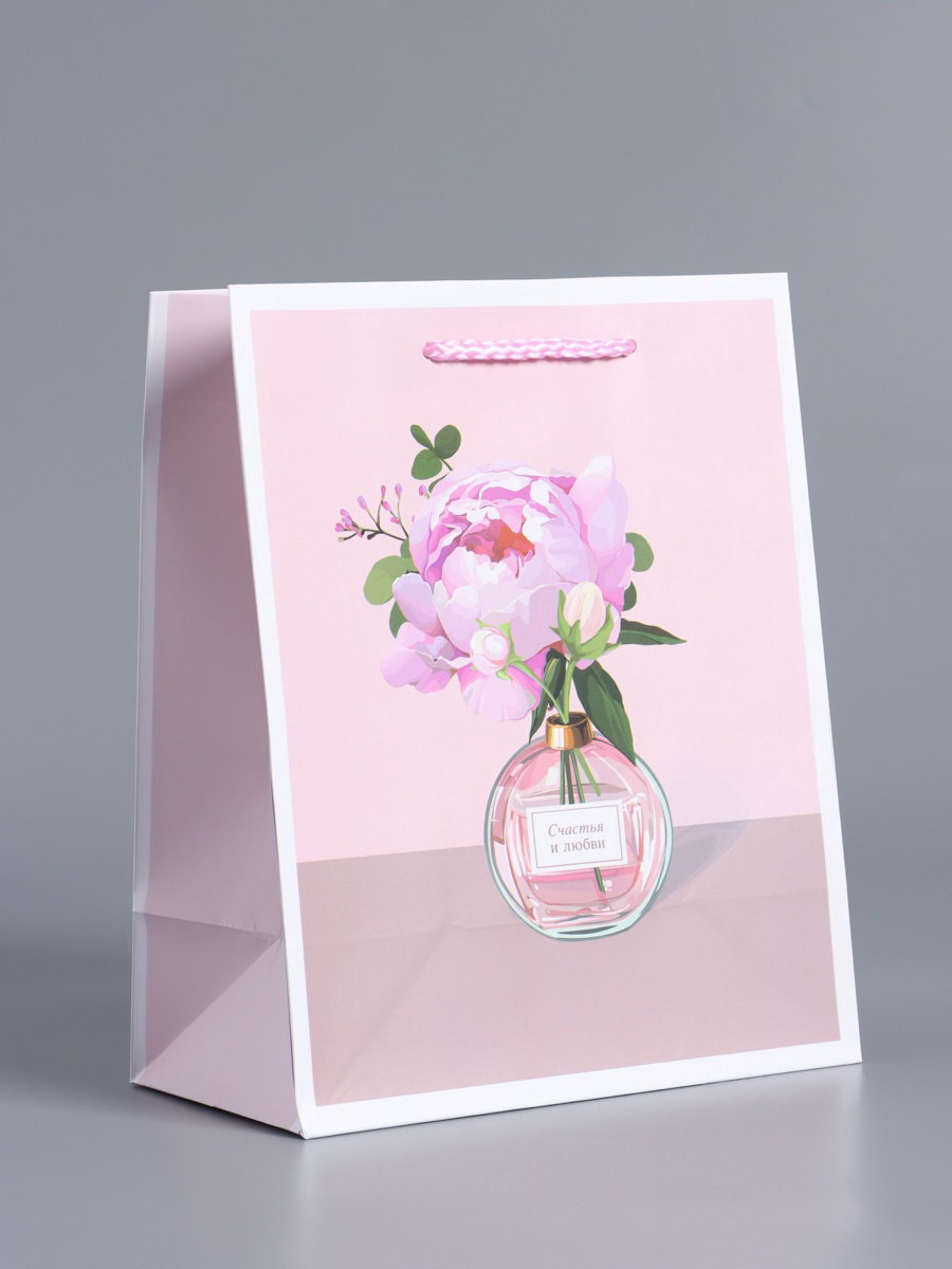 Пакет подарочный ламинированный "Счастья и любви", нежно - розовый, 18x22.3x10 см, АРТ ДИЗАЙН, Китай
