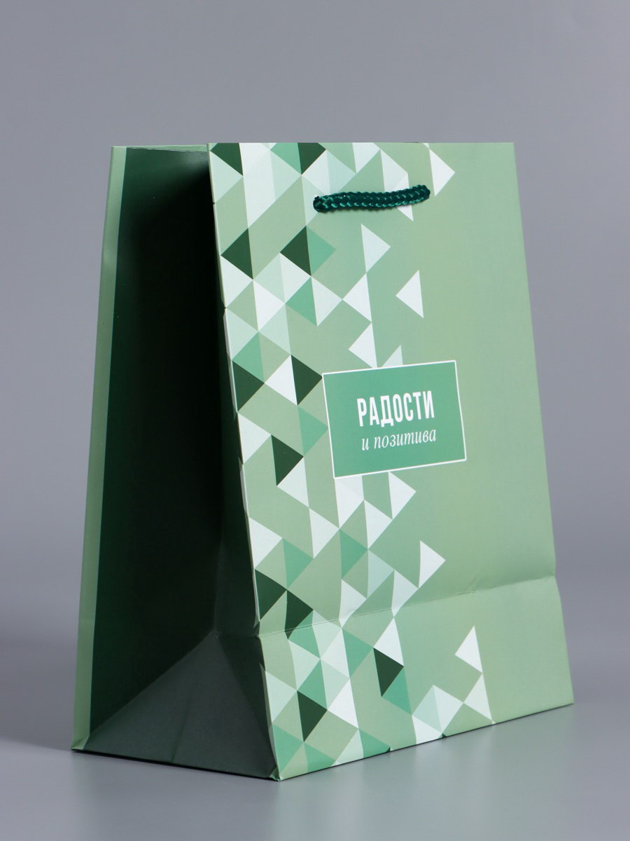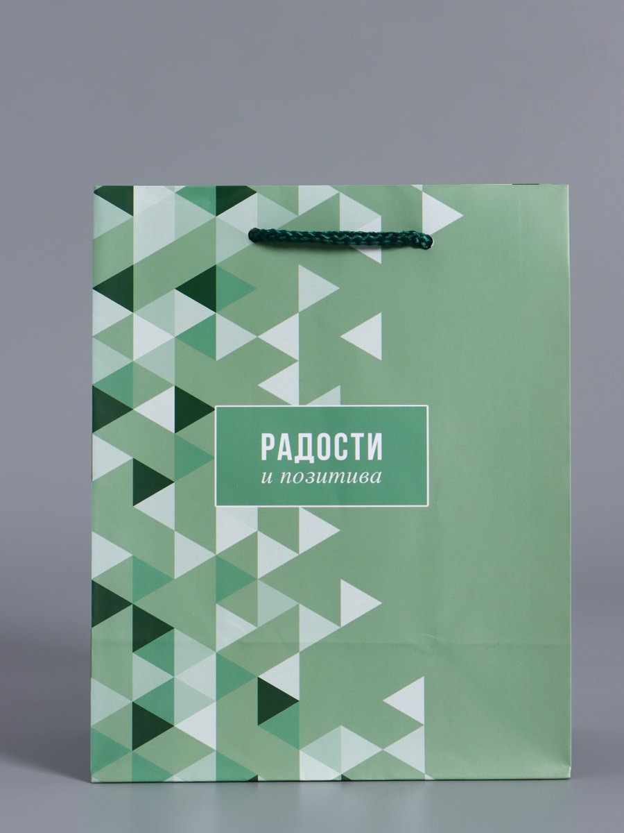 Пакет подарочный ламинированный "Радости и позитива", зелёный, 18x22.3x10 см, АРТ ДИЗАЙН, Китай