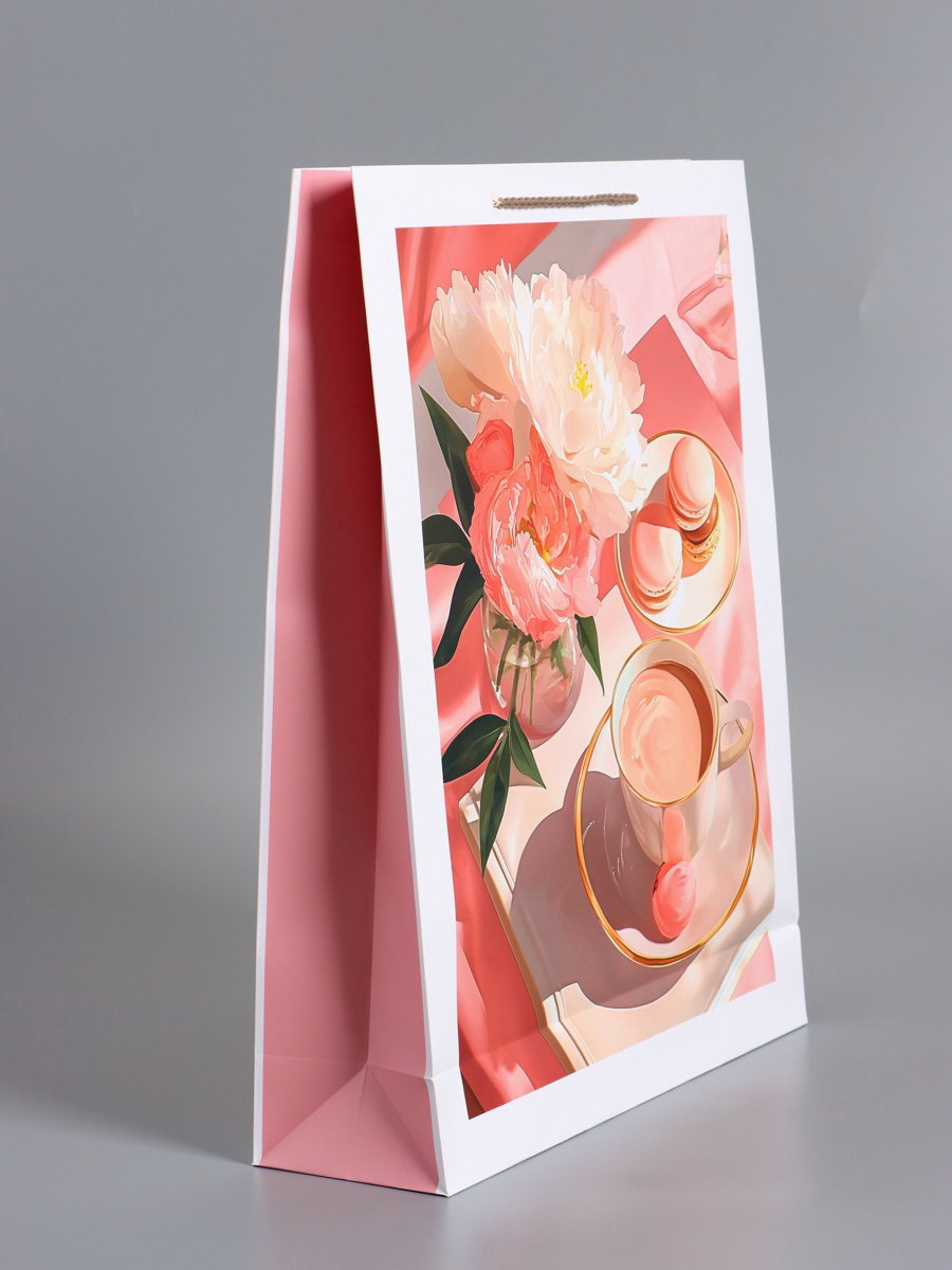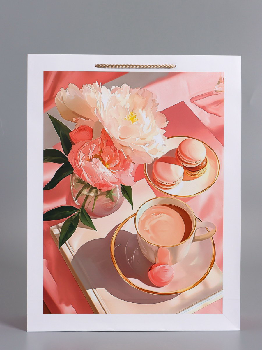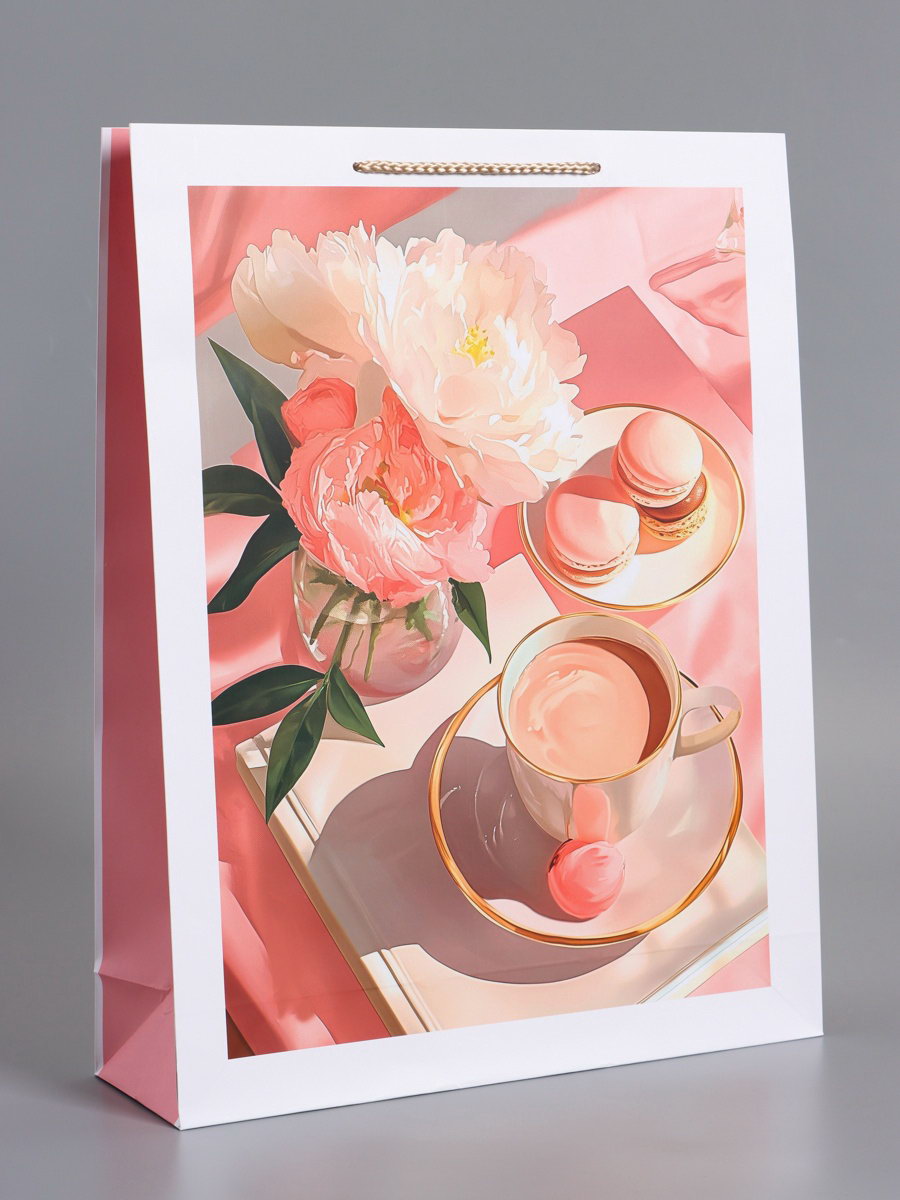 Пакет подарочный ламинированный "Утренний кофе", розовый, 33x42.5x10 см, АРТ ДИЗАЙН, Китай