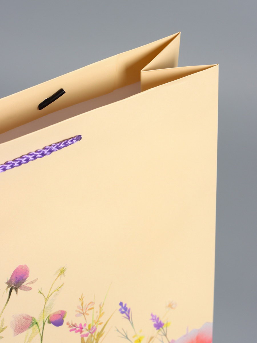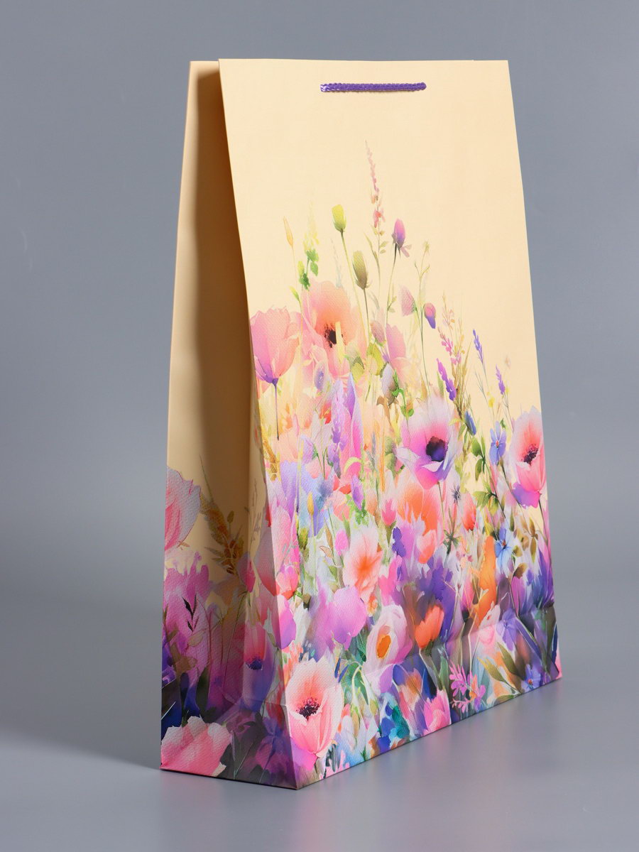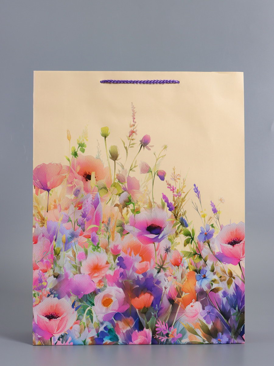 Пакет подарочный ламинированный "Полевые цветы", персиковый с розовым, 33x42.5x10 см, АРТ ДИЗАЙН, Китай