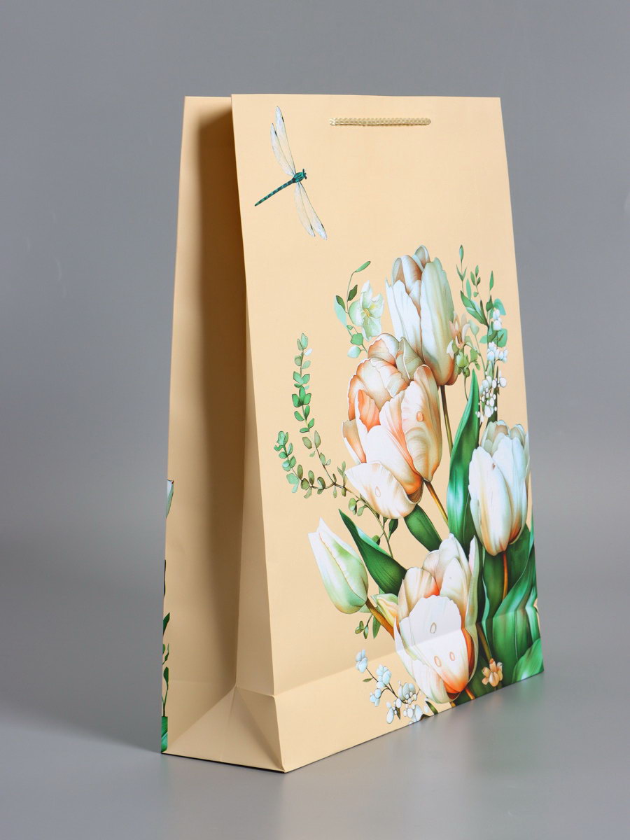 Пакет подарочный ламинированный "Стрекоза", пудровый, 33x42.5x10 см, АРТ ДИЗАЙН, Китай