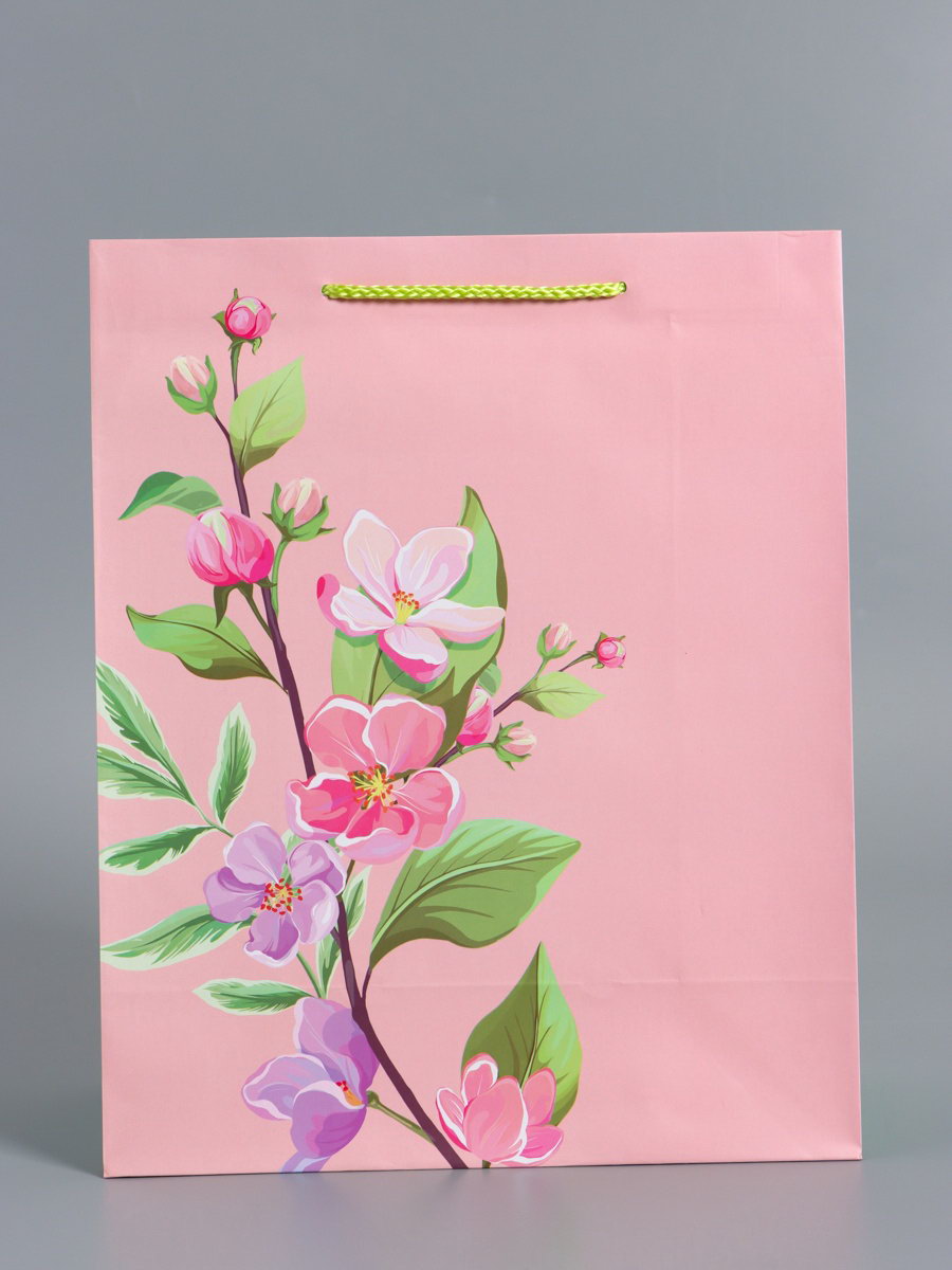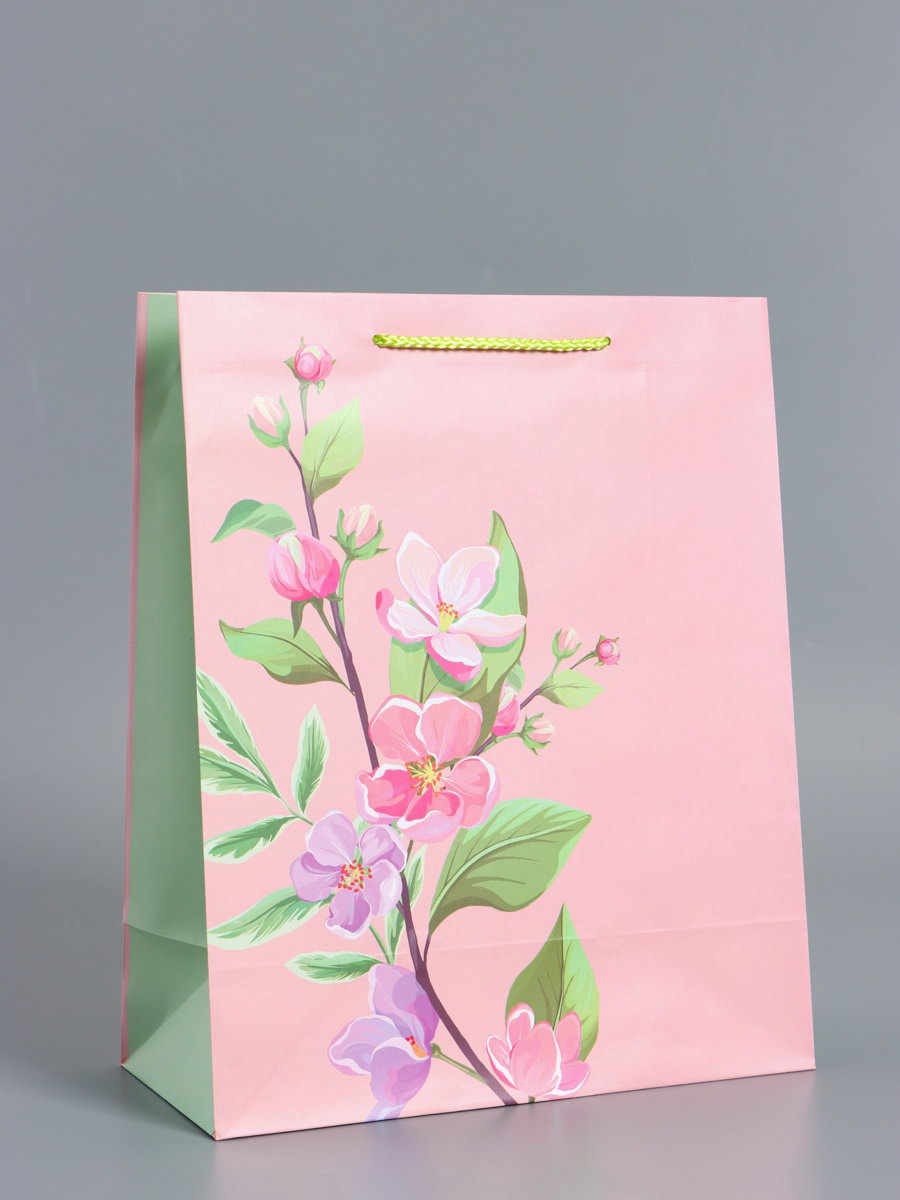 Пакет подарочный ламинированный "Нежный комплимент", розово - травяной, 26x12x32 см, АРТ ДИЗАЙН, Китай