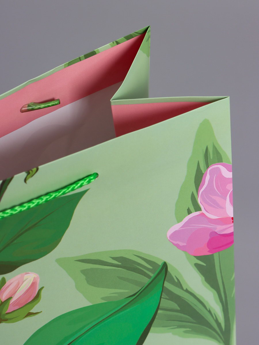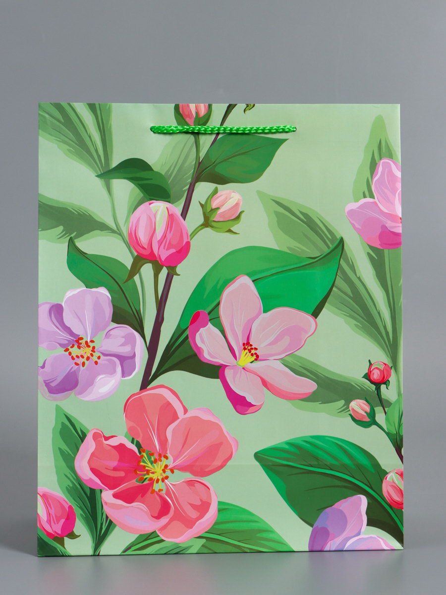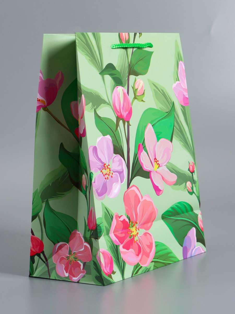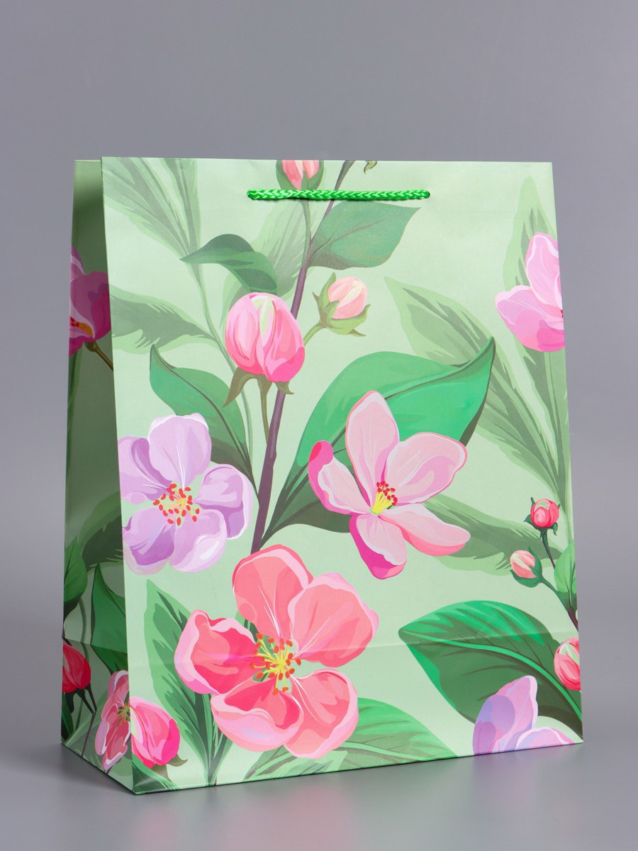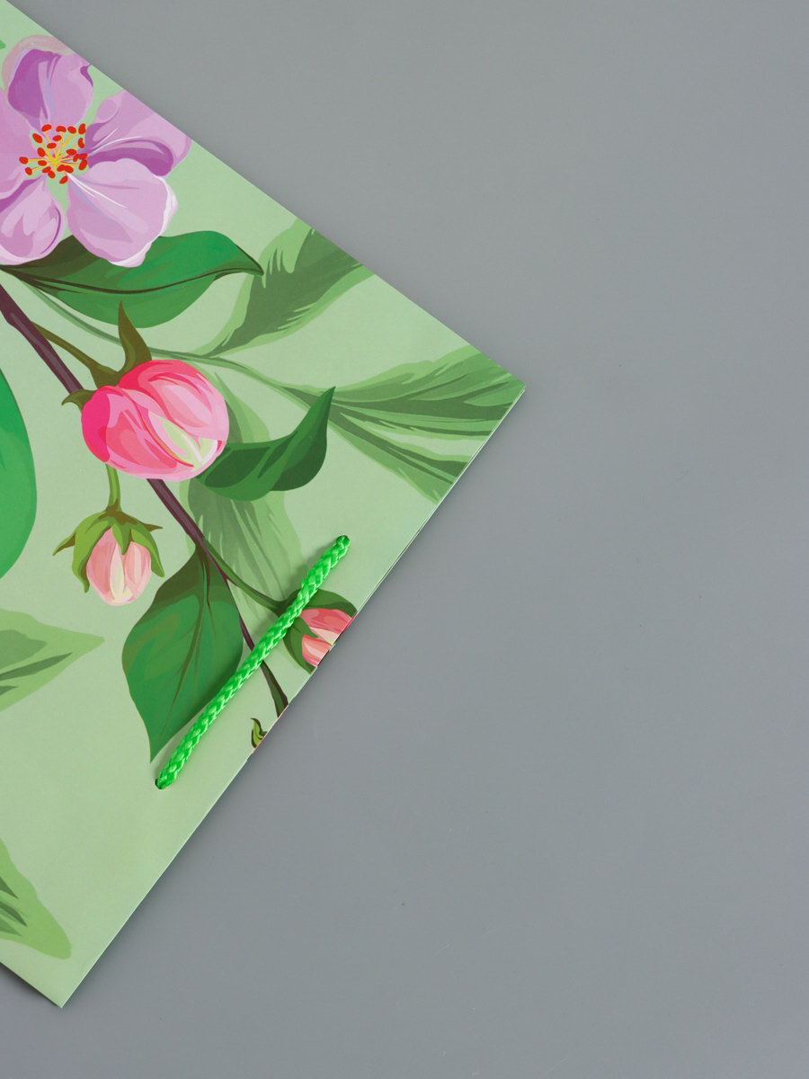 Пакет подарочный ламинированный "Весеннее признание", зелёный, 26x12x32 см, АРТ ДИЗАЙН, Китай