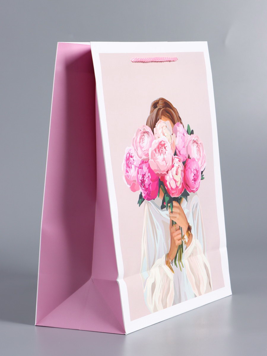 Пакет подарочный ламинированный "Момент для себя", розовый, 26x12x32 см, АРТ ДИЗАЙН, Китай