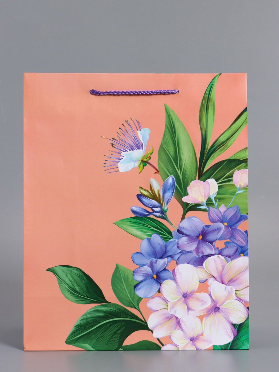 Пакет подарочный ламинированный "Цветы эмоций", персиковый, 26x12x32 см, АРТ ДИЗАЙН, Китай