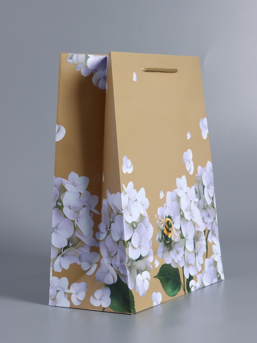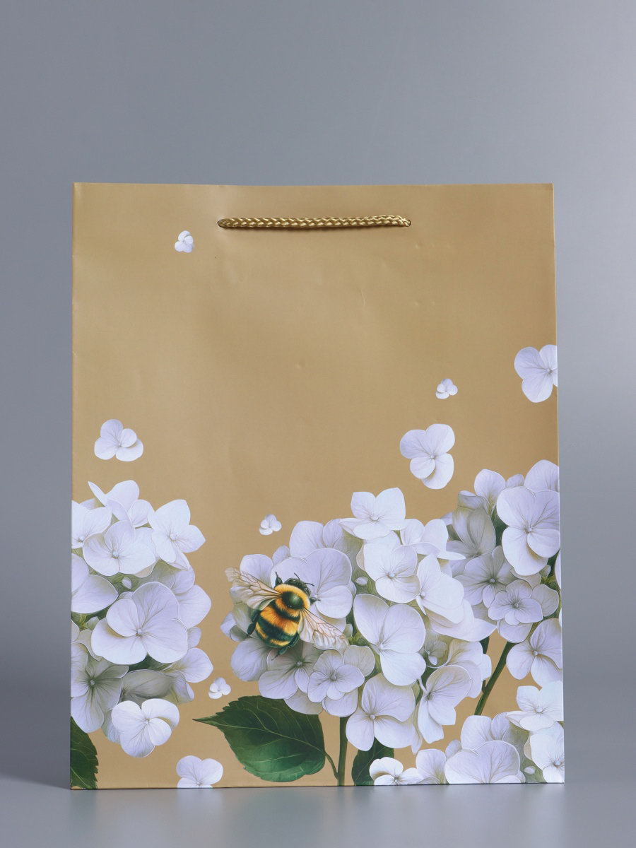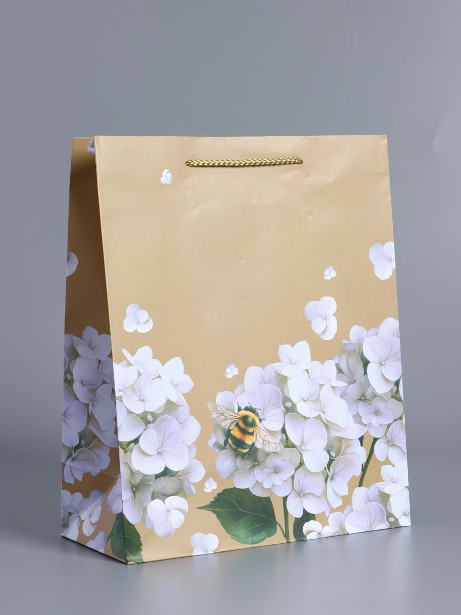 Пакет подарочный ламинированный "Пчёлка на гортензии", бежевый, 26x12x32 см, АРТ ДИЗАЙН, Китай