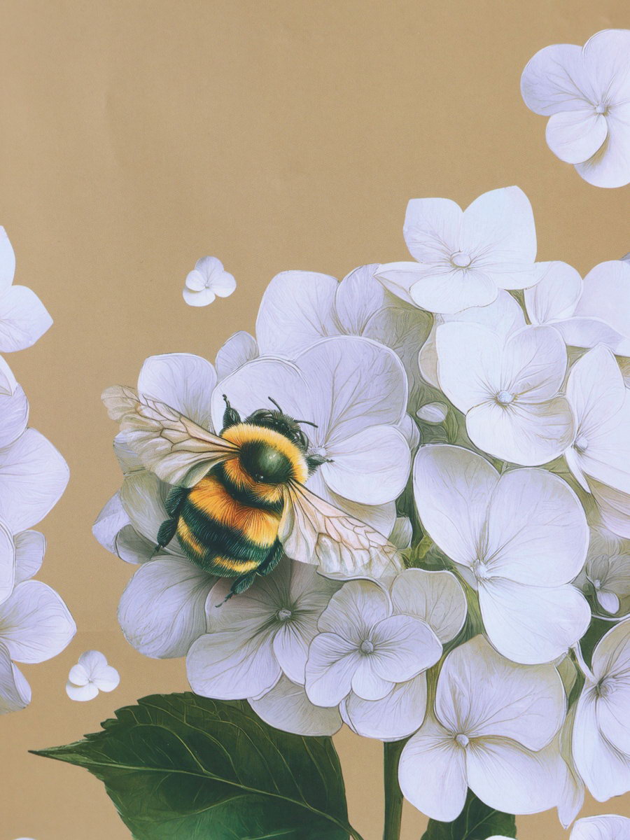 Подарок, который говорит о внимании к красоте: Эта упаковка сама по себе является комплиментом вкусу. Она показывает, что подарок выбран не случайно, а с мыслью о прекрасном. Выберите пакет "Пчёлка на гортензии" для того, чья утончённость заслуживает столь же изящного оформления. | ||