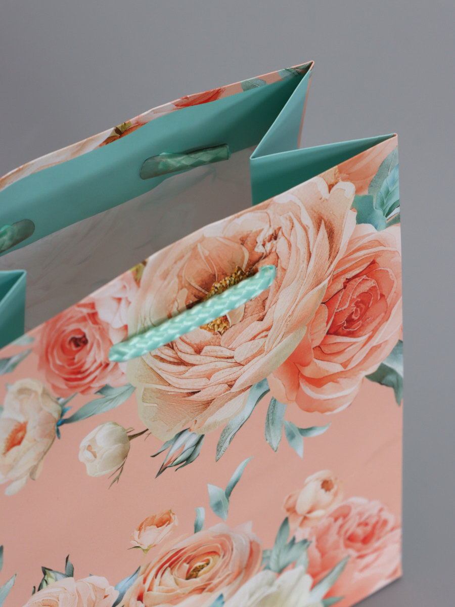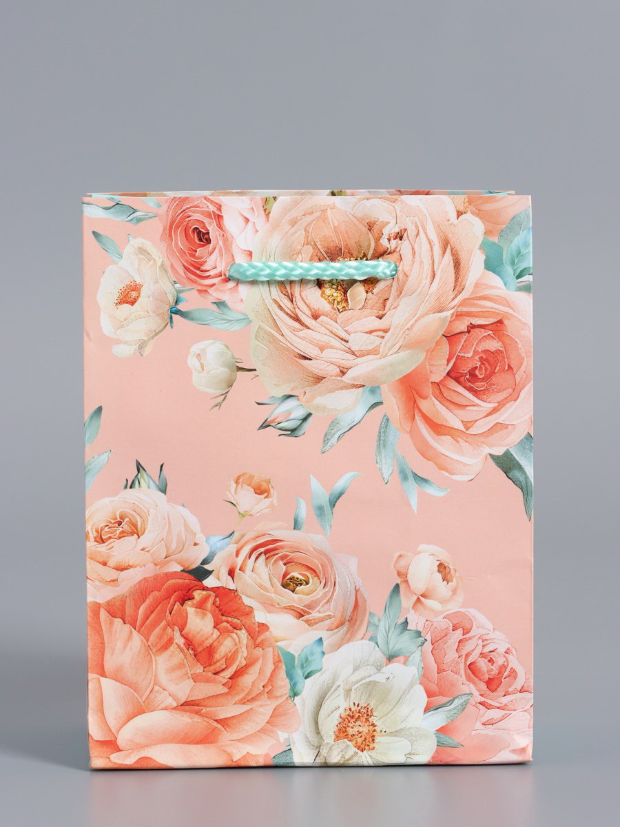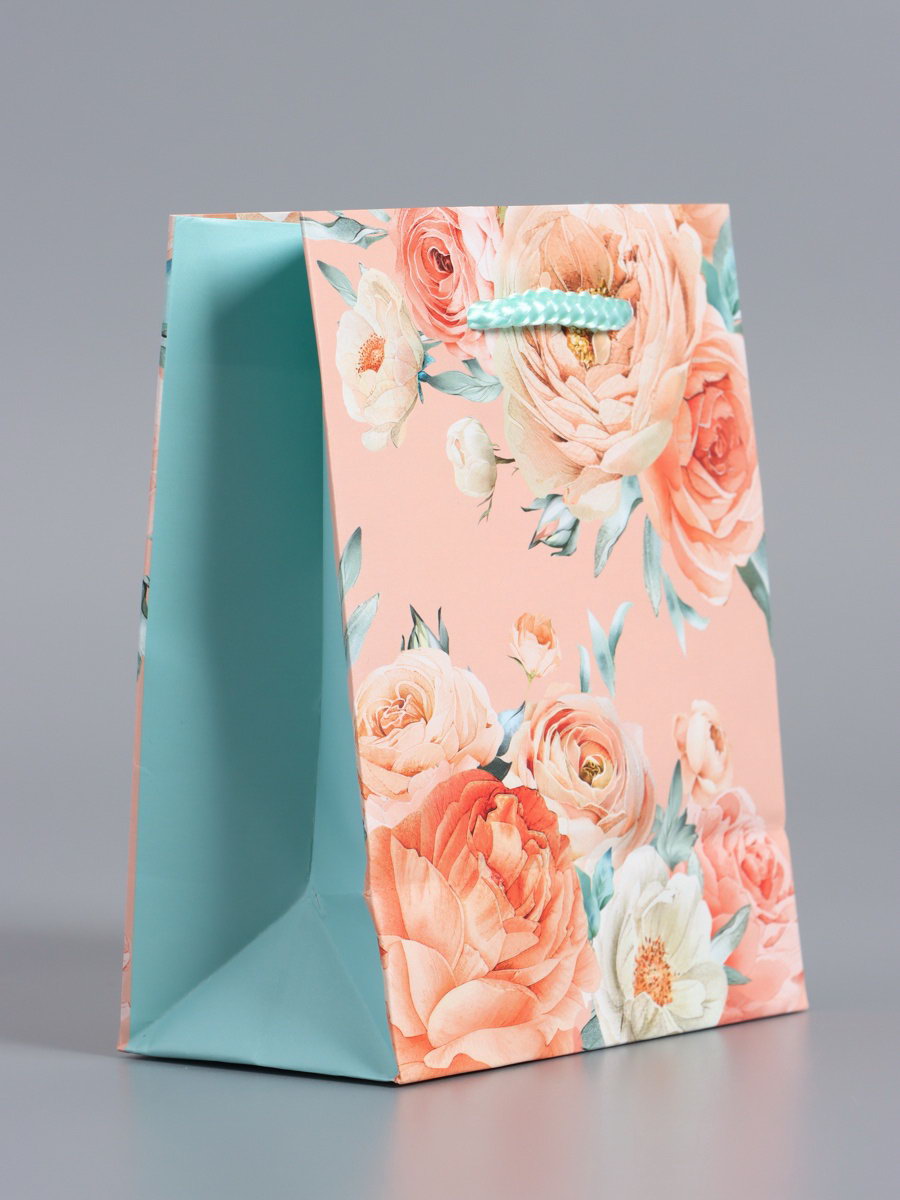 Пакет подарочный ламинированный "Цветочная радость", мятно - пудровый, 11.5x14.5x6.5 см, АРТ ДИЗАЙН, Китай