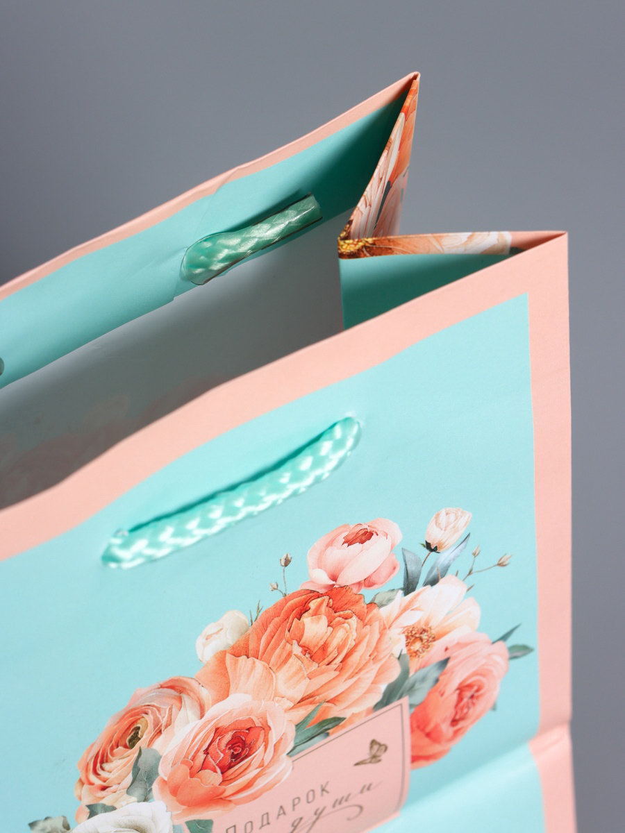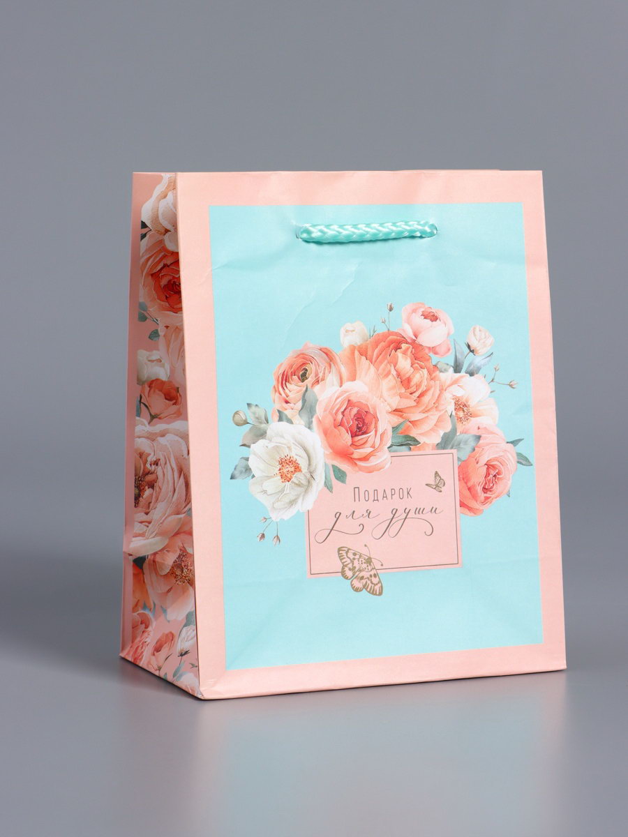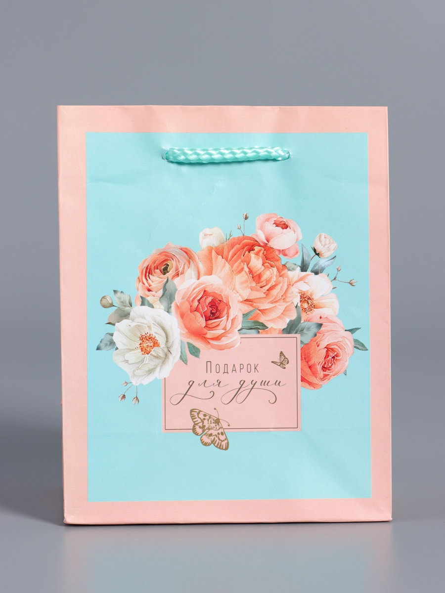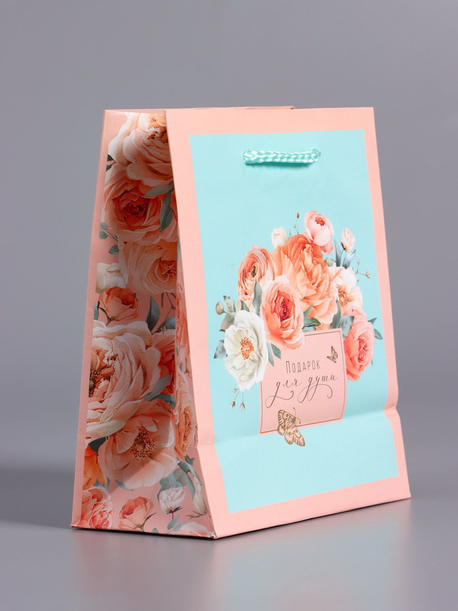 Пакет подарочный ламинированный "Подарок для души", розовый с мятным, 11.5x14.5x6.5 см, АРТ ДИЗАЙН, Китай