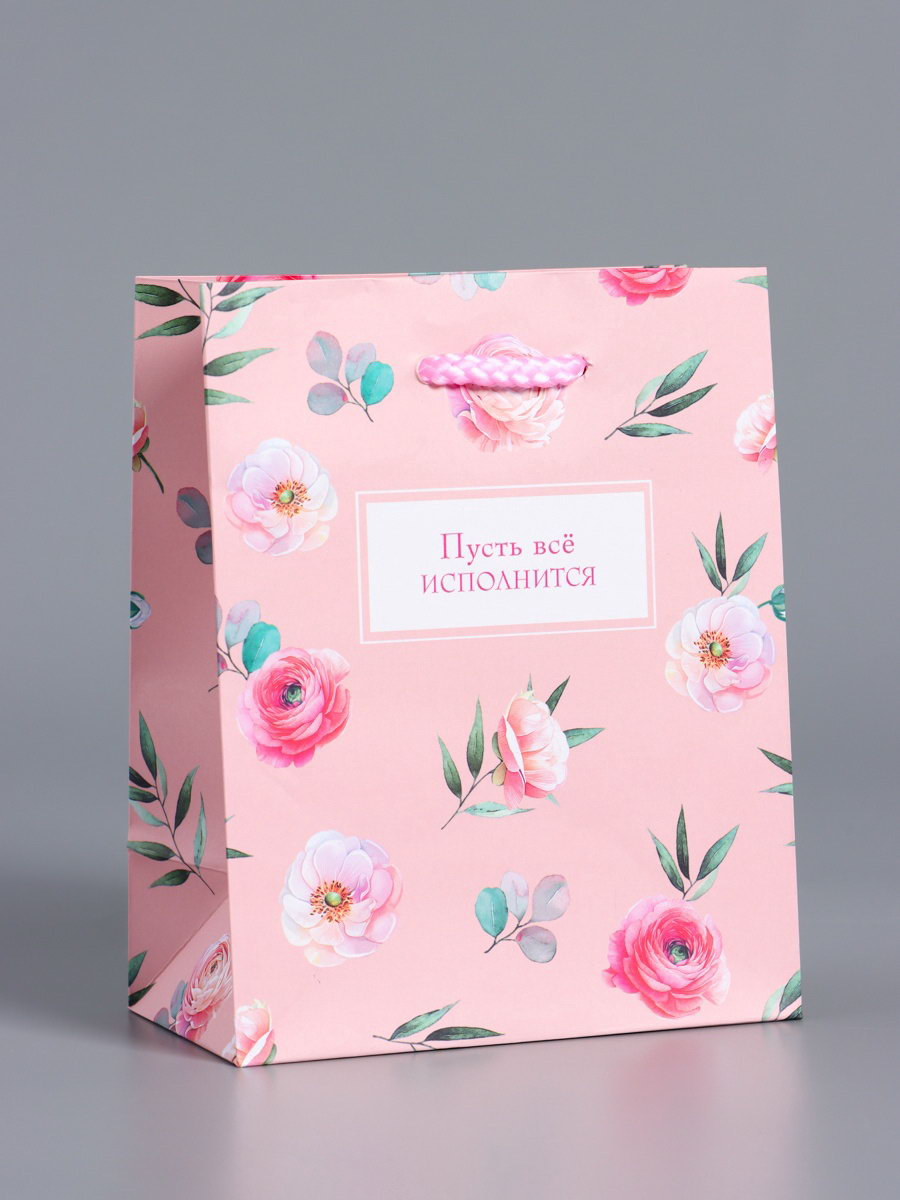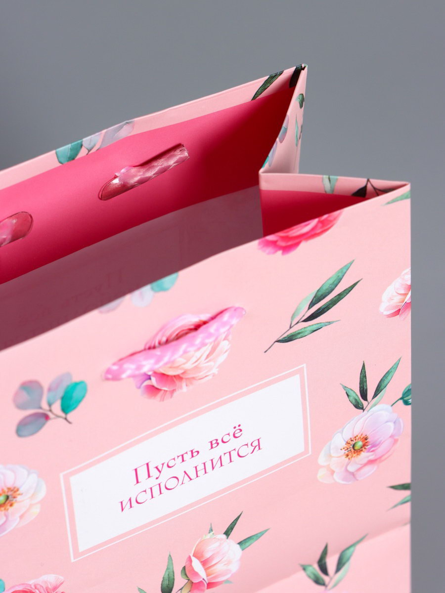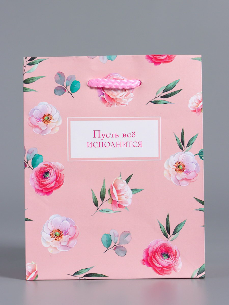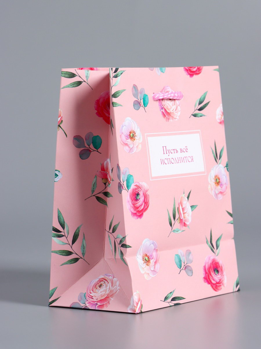 Пакет подарочный ламинированный "Пусть всё исполнится", розовый, 11.5x14.5x6.5 см, АРТ ДИЗАЙН, Китай