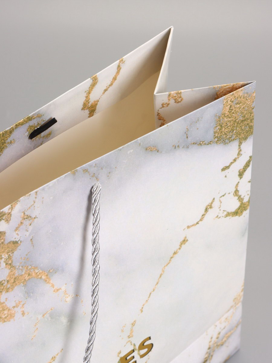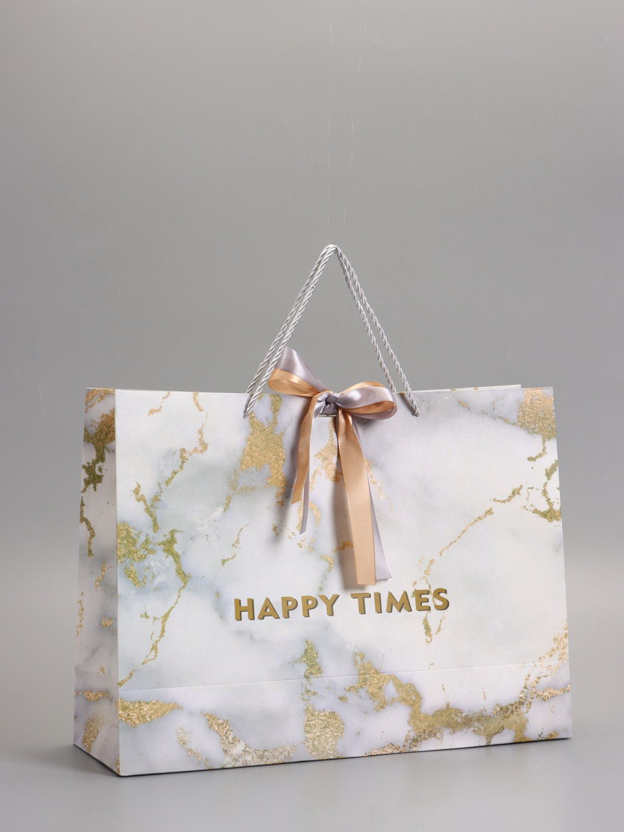 Пакет подарочный ламинированный "Мрамор", белый, с бантиком, 43x32x14 см, 14x43x32 см., UPAK LAND, Китай