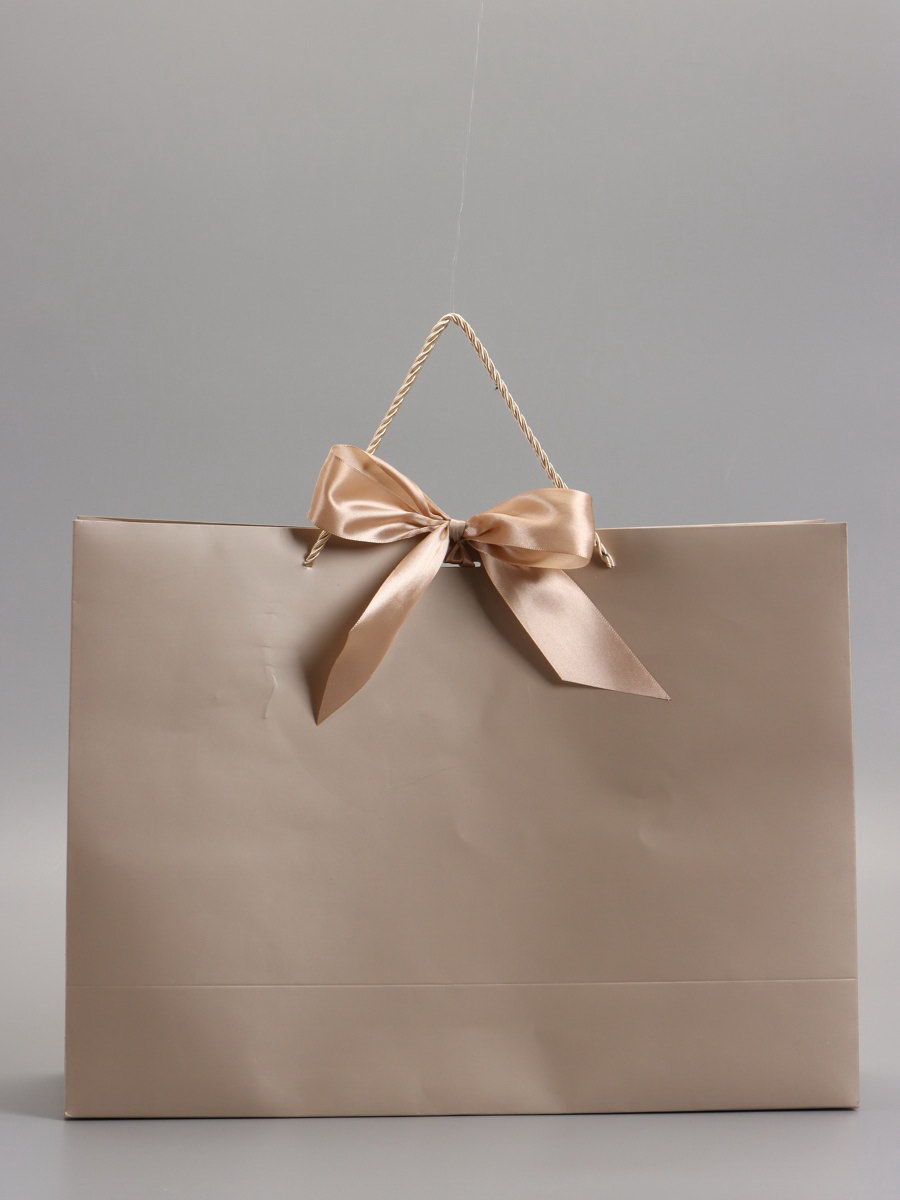 Пакет подарочный ламинированный, бронзовый, с бантом, 43x32x14 см, 14x43x32 см., UPAK LAND, Китай