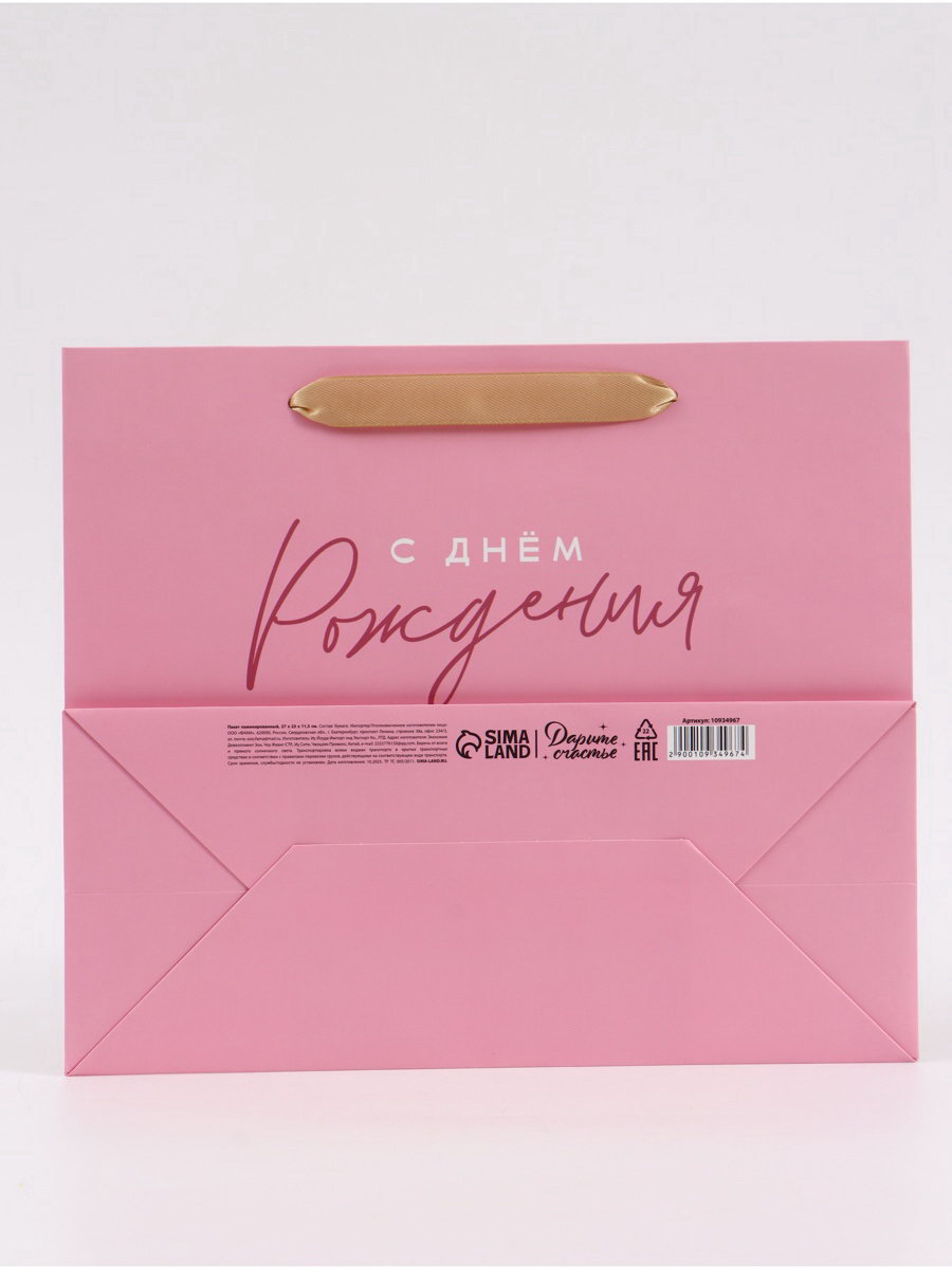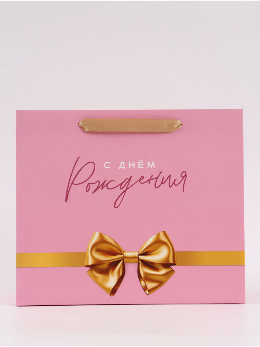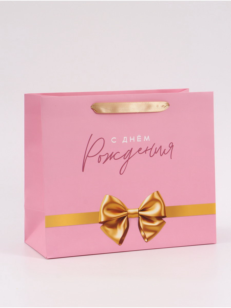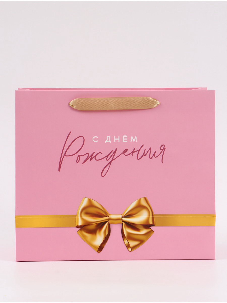 Пакет подарочный "С Днём рождения. Бант", 27x23x11.5 см, 11.5x27x23 см., Дарите Счастье, Китай