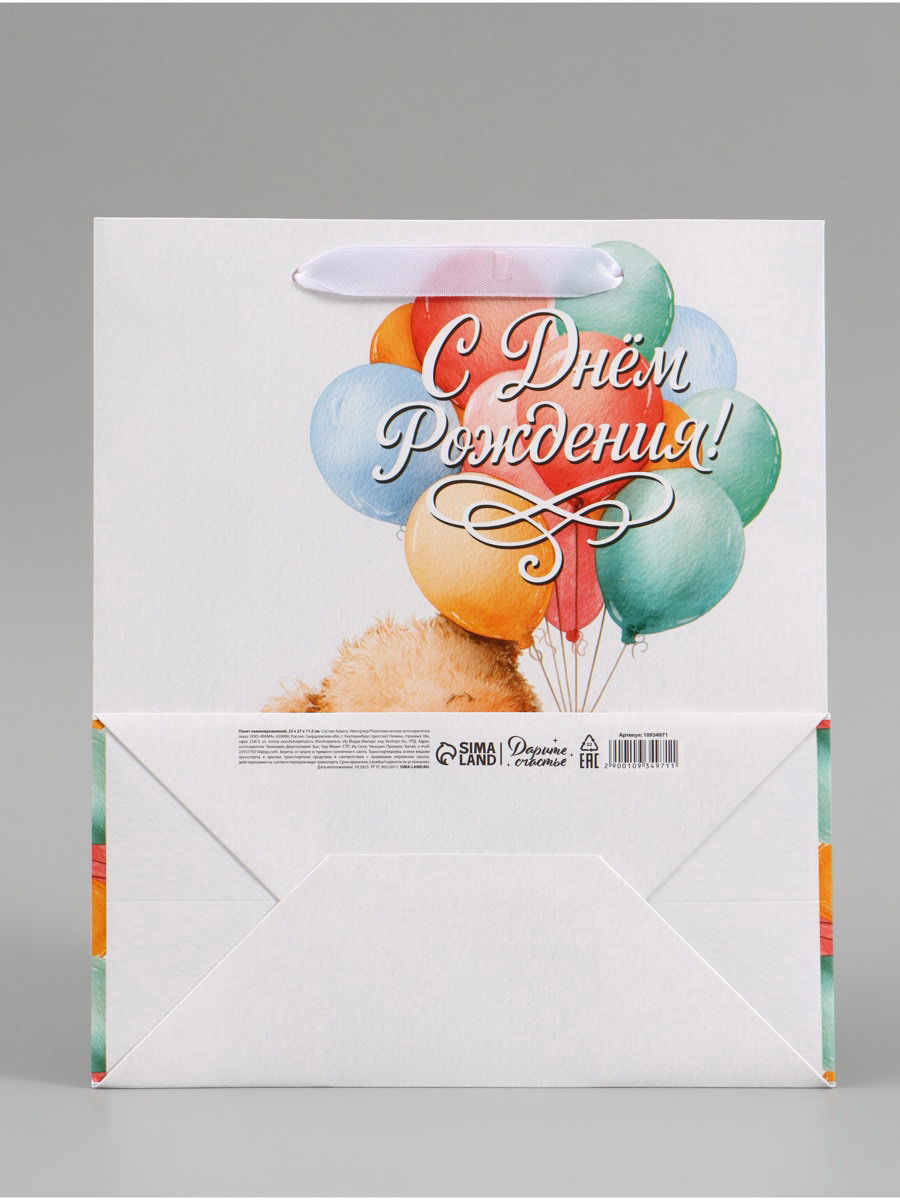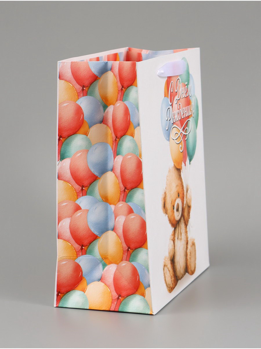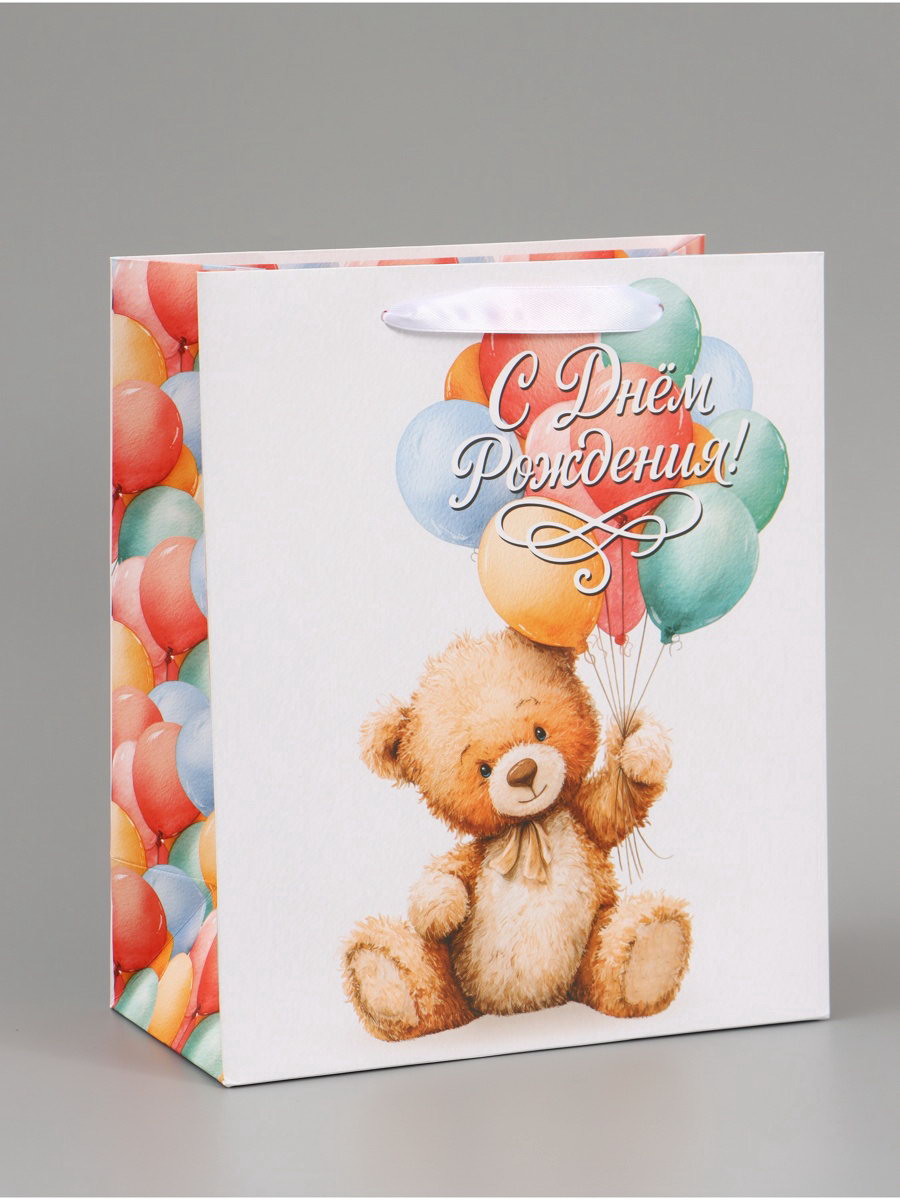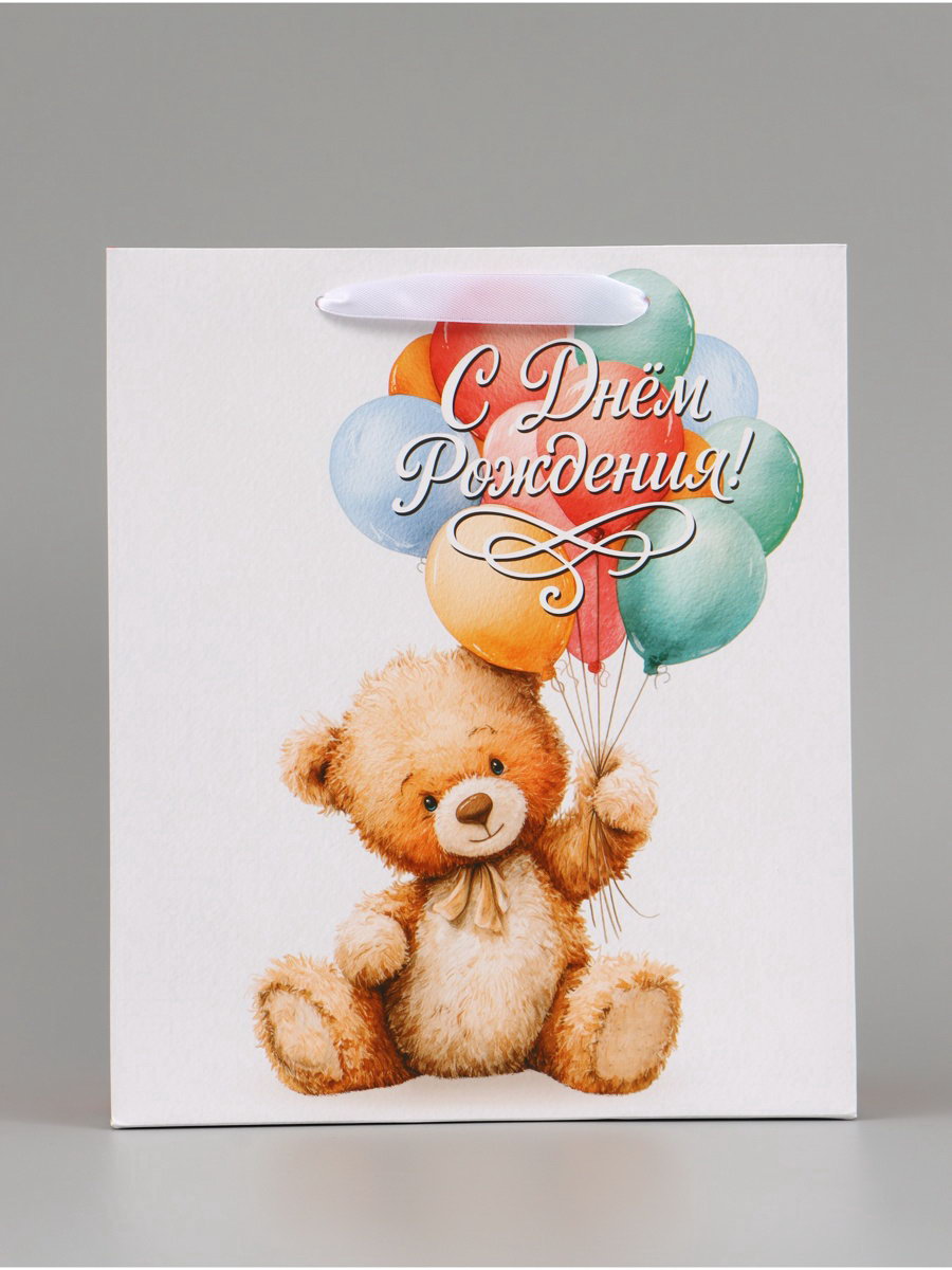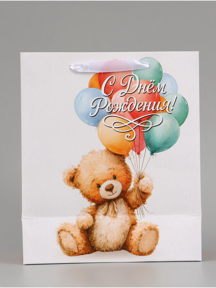 Пакет подарочный "С Днём рождения. Мишка", 23x27x11.5 см, 11.5x23x27 см., Дарите Счастье, Китай