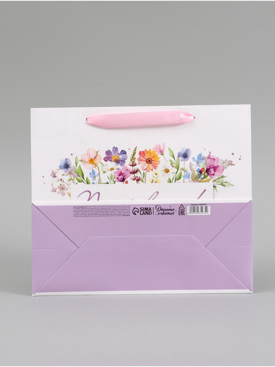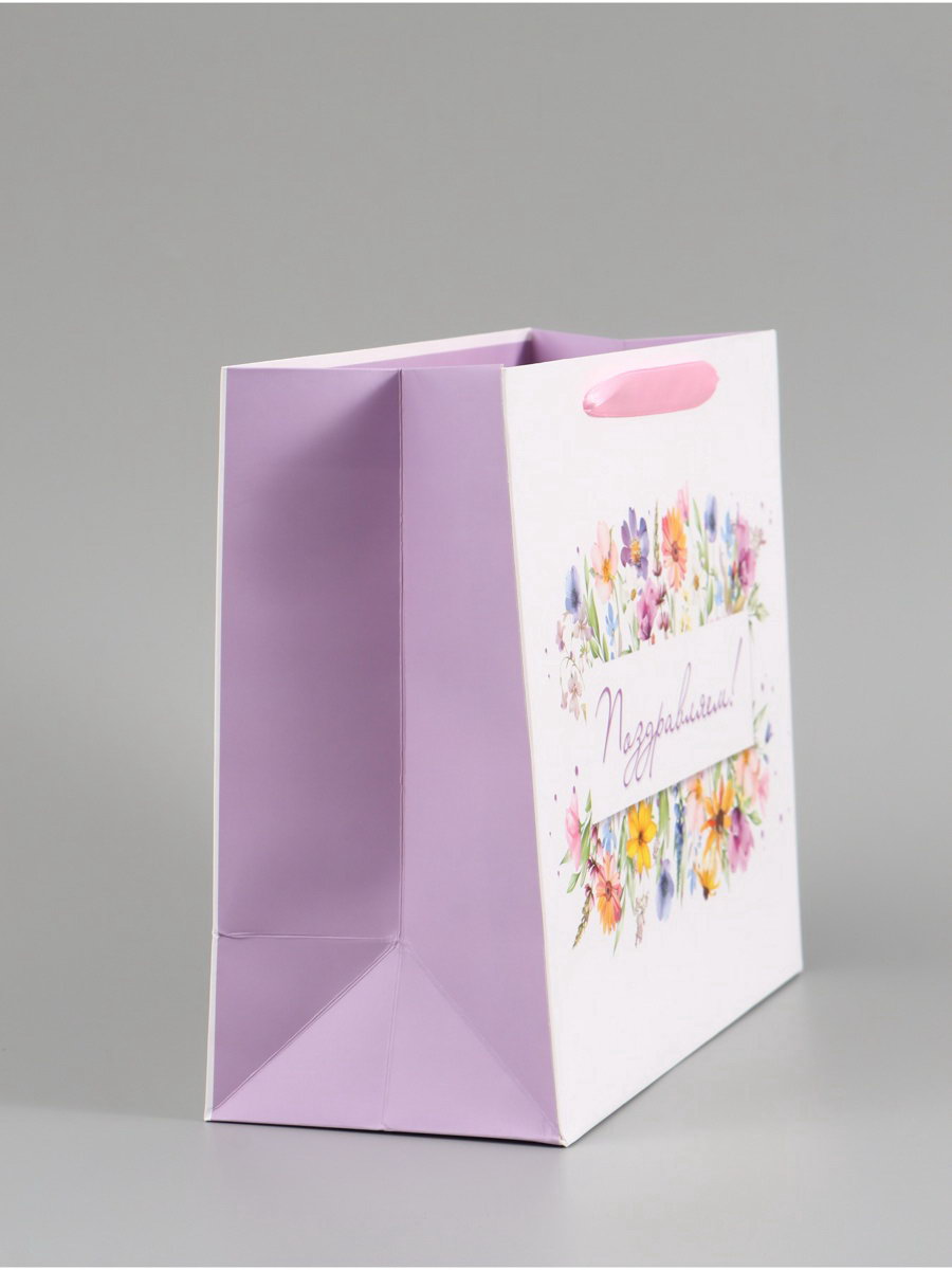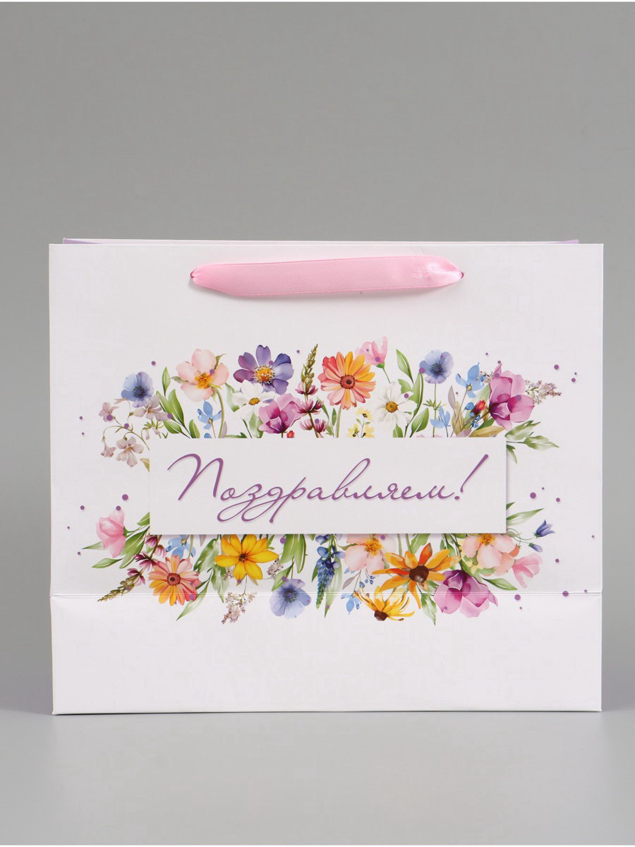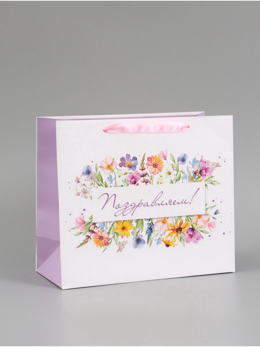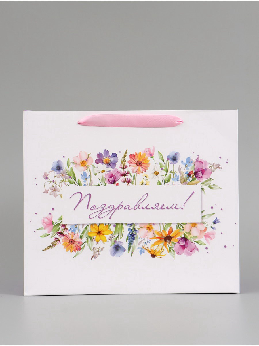 Пакет подарочный "Поздравляем. Цветы", 27x23x11.5 см, 11.5x27x23 см., Дарите Счастье, Китай