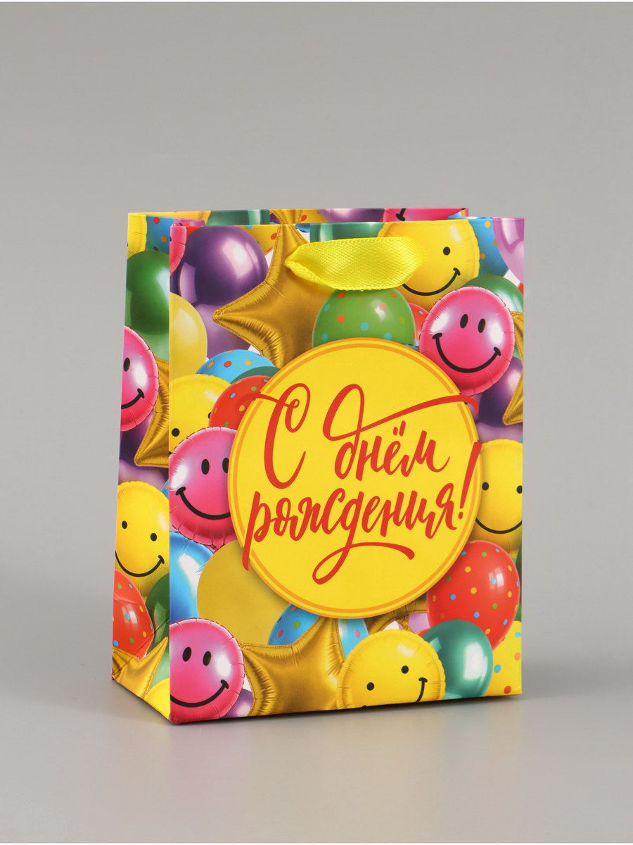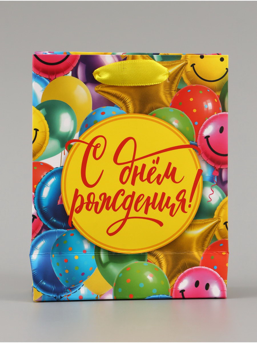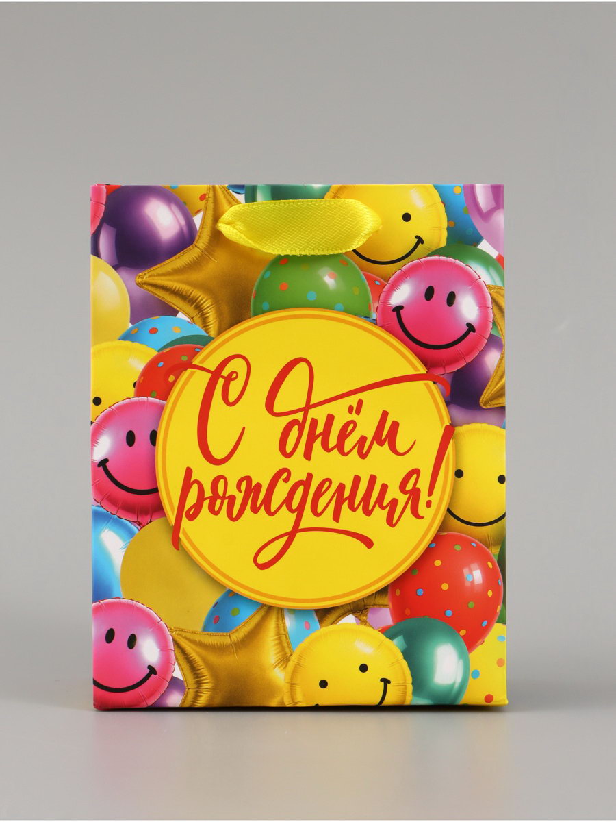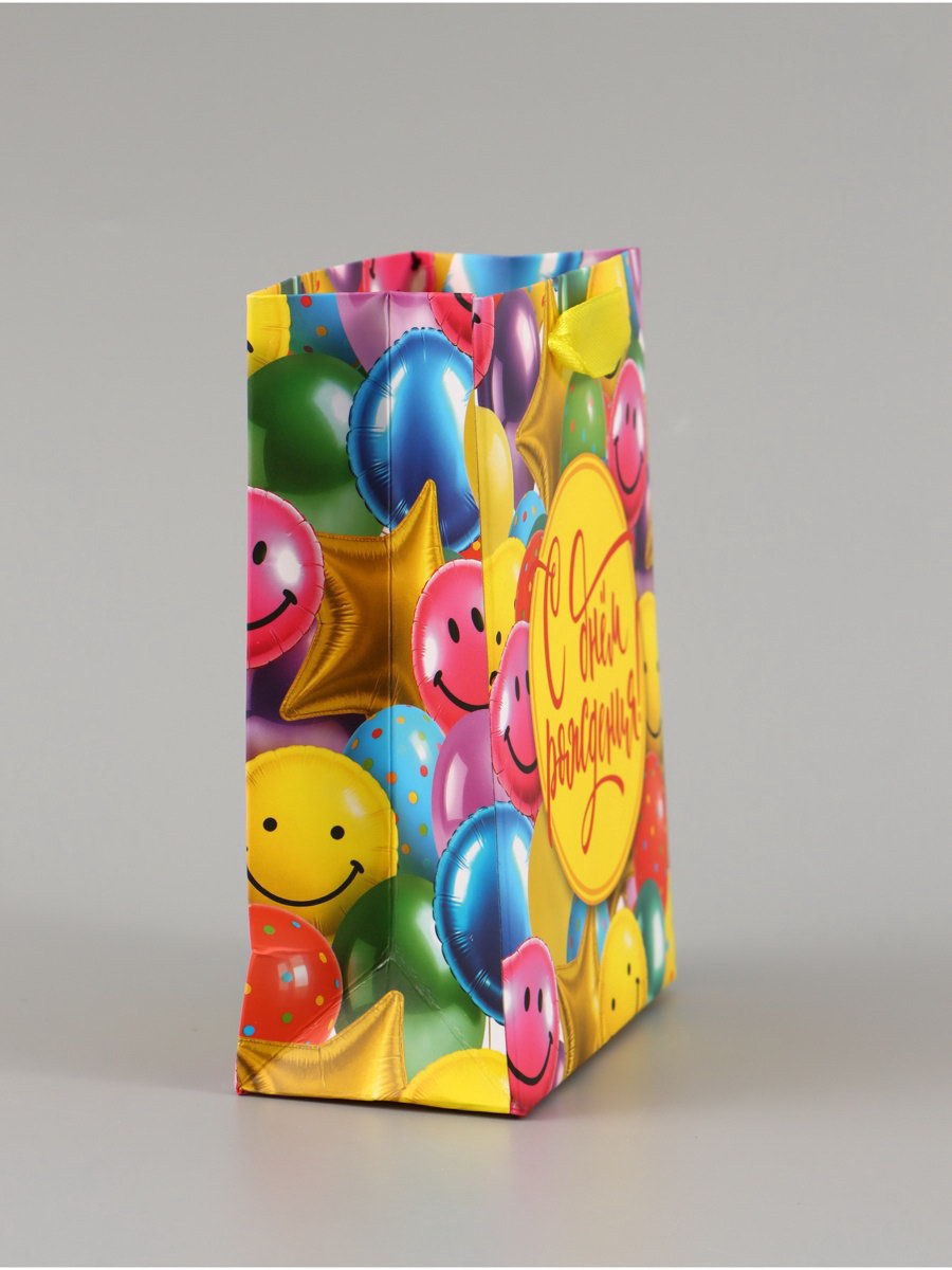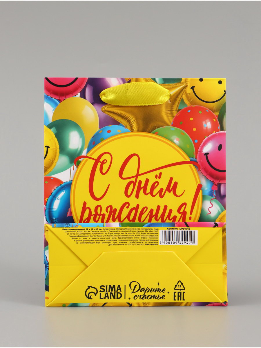 Пакет подарочный ламинированный "С Днём рождения", шары, 12x15x5.5 см, вертикальный, 5.5x12x15 см., Дарите Счастье, Китай
