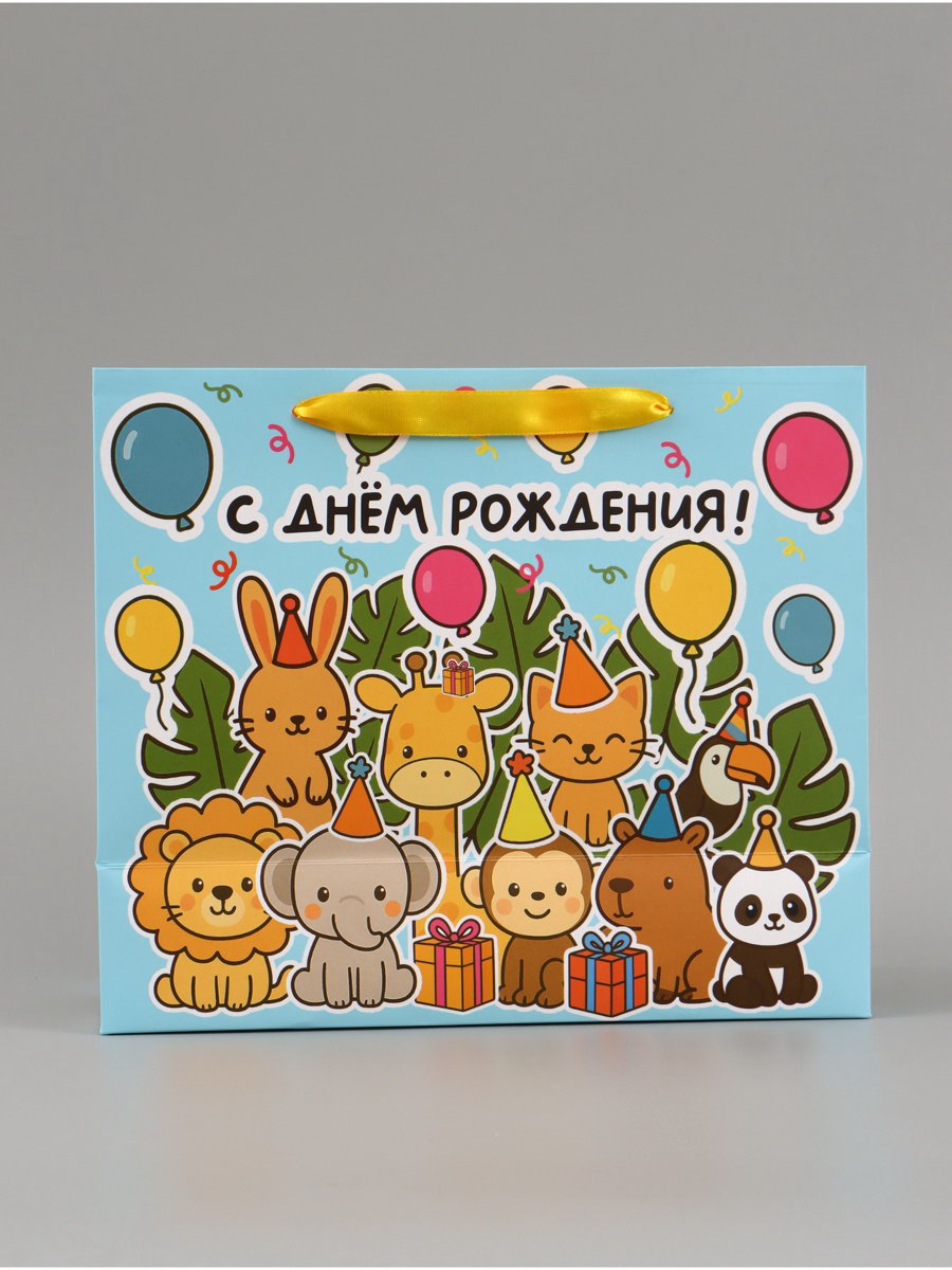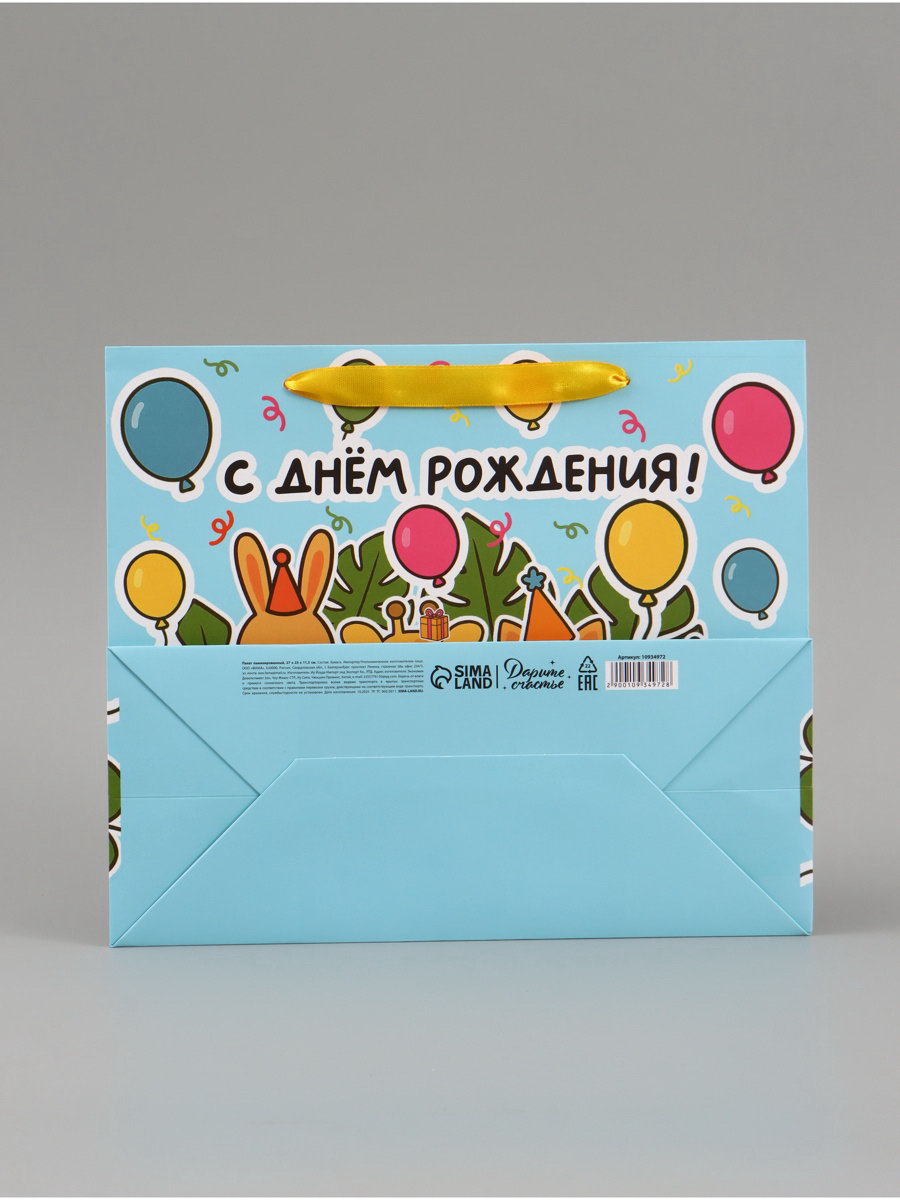 Пакет подарочный ламинированный "С Днём рождения", ML 27x23x11.5 см, горизонтальный, 11.5x27x23 см., Дарите Счастье, Китай