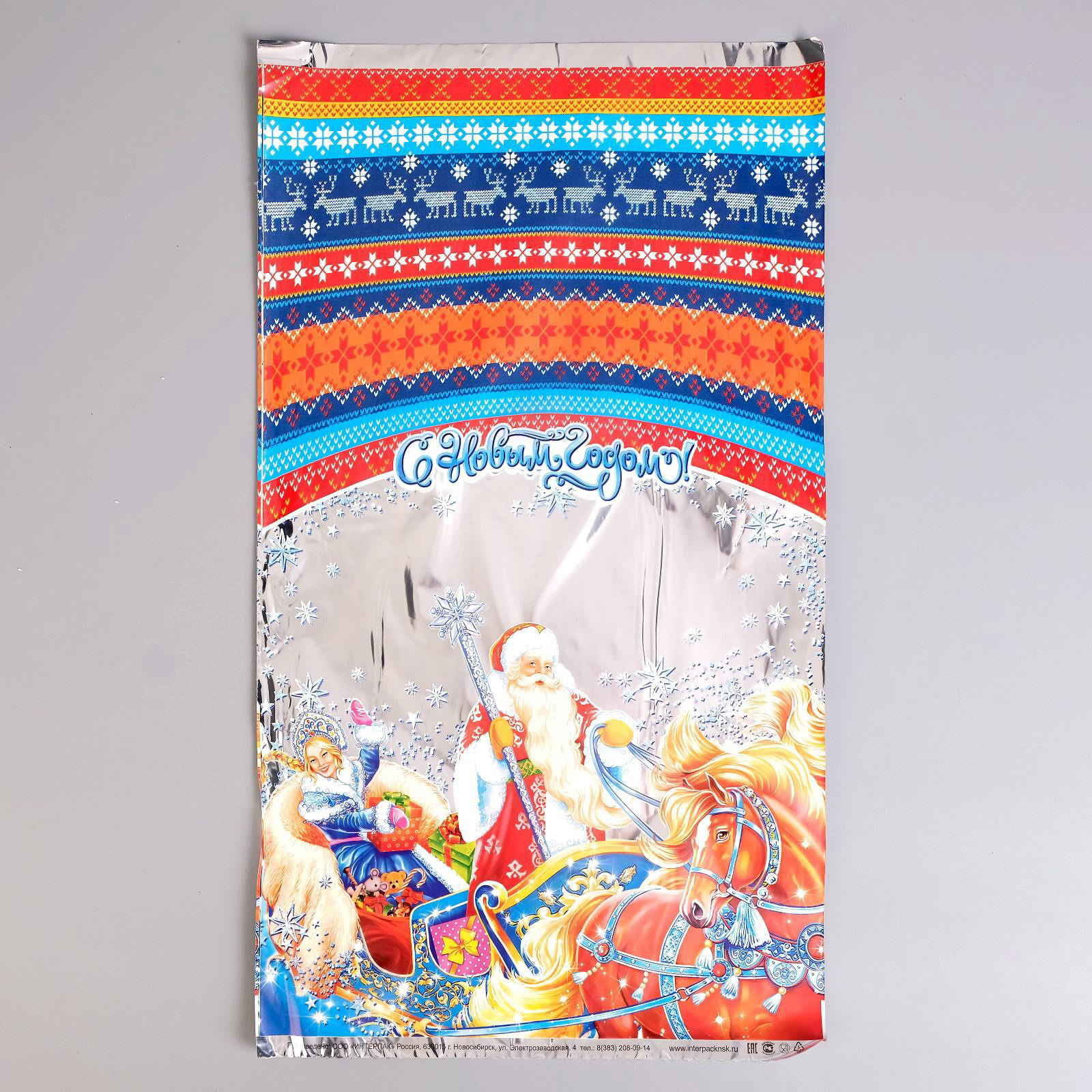Пакет подарочный новогодний, для сладкого подарка "Снежная тройка", 30x50 см, Интерпак, Россия