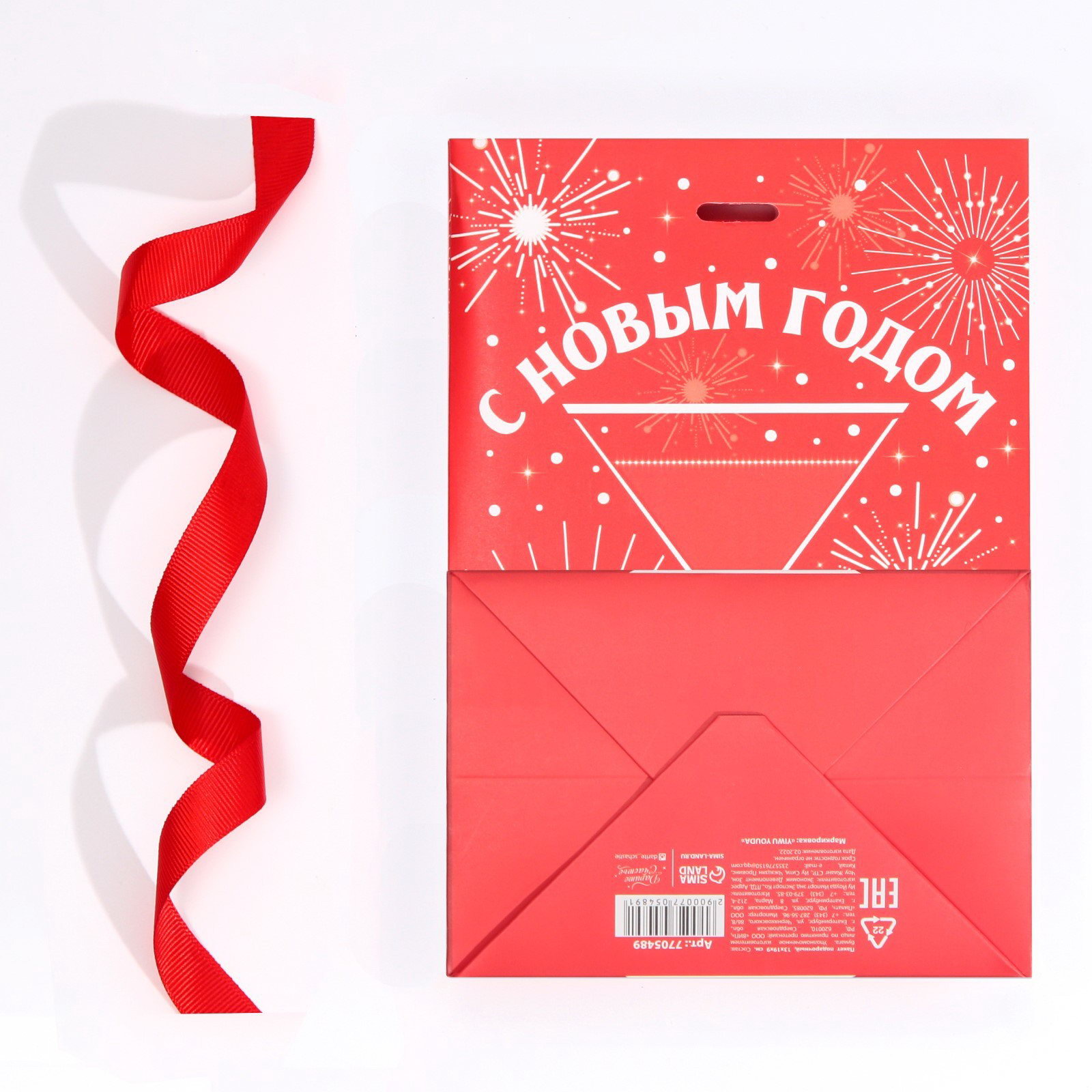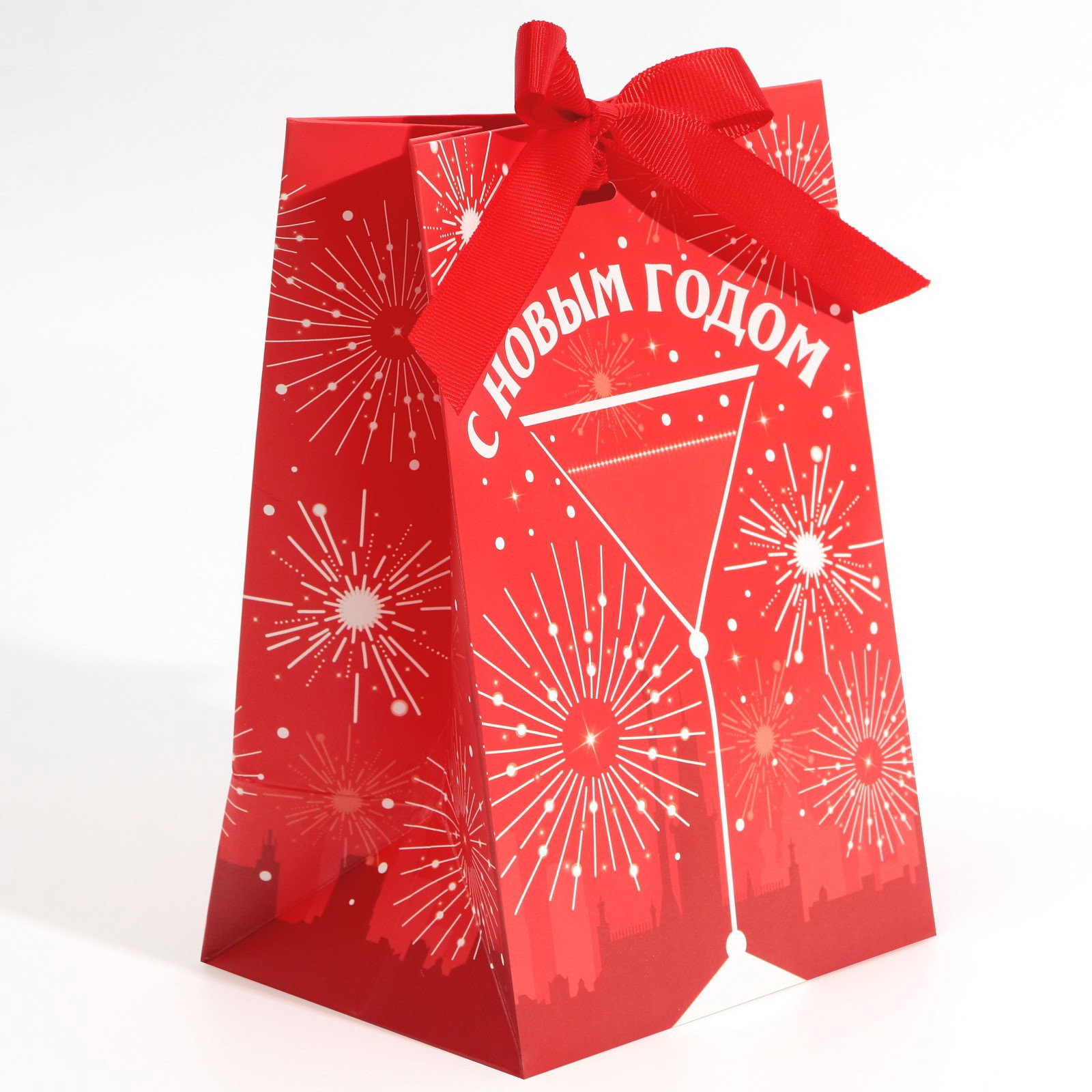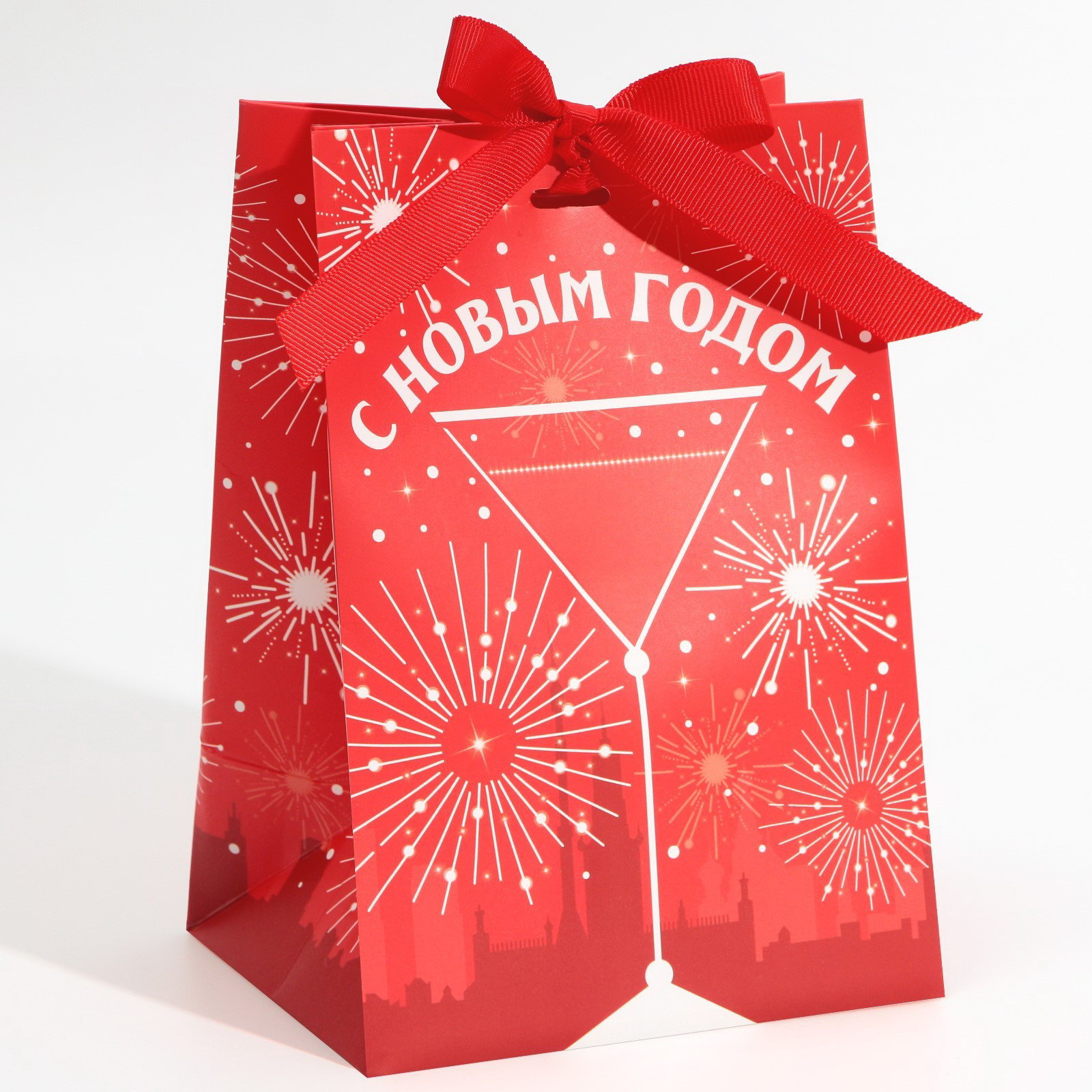 Пакет подарочный с лентой "Бокал", 13 x 19 x 9 см, 19x13x9 см., Дарите Счастье, Китай