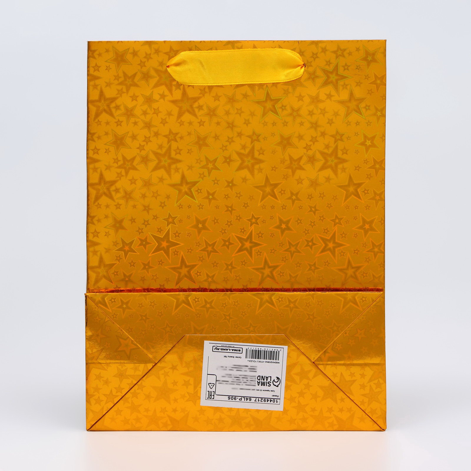 Пакет подарочный, фольгированный, упаковка, с окном "Сердце", "Золотой", S 23.5x18x8.5 см, UPAK LAND, Китай