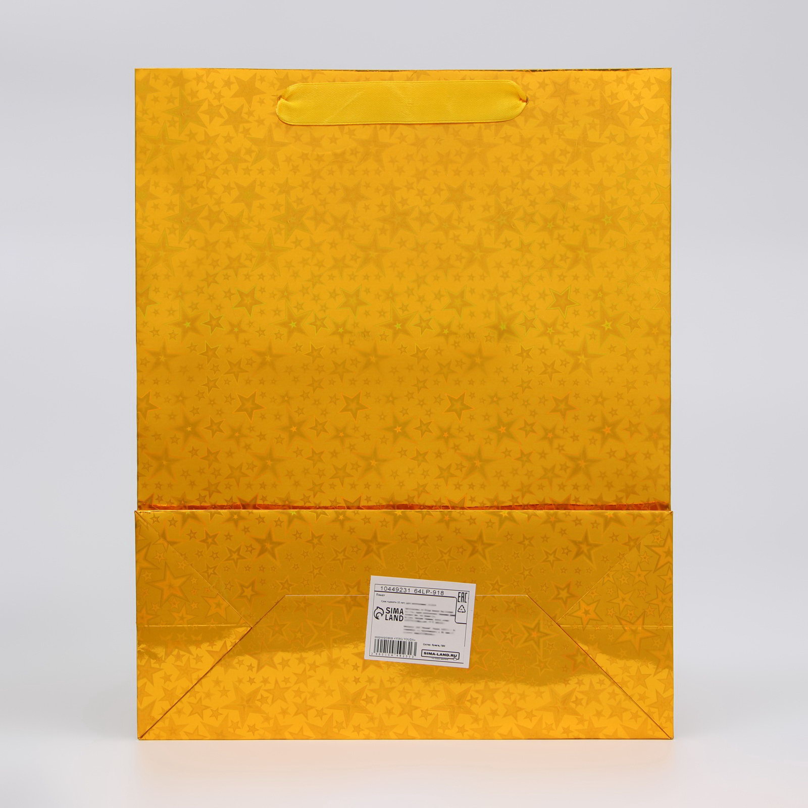 Пакет подарочный, фольгированный, упаковка, с окном "Сердце", "Золотой", M 32x25.5x11 см, UPAK LAND, Китай
