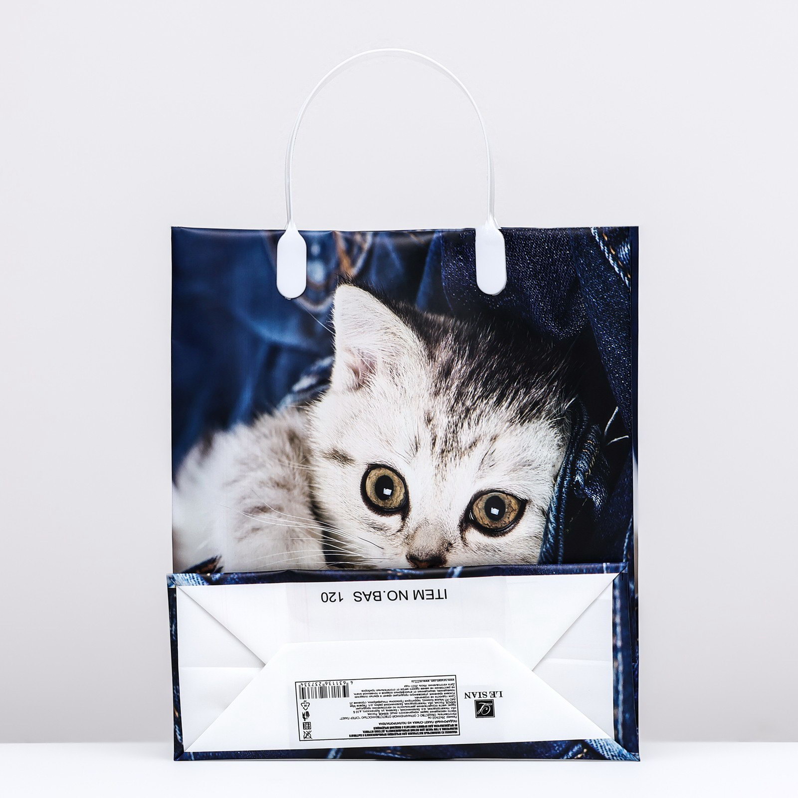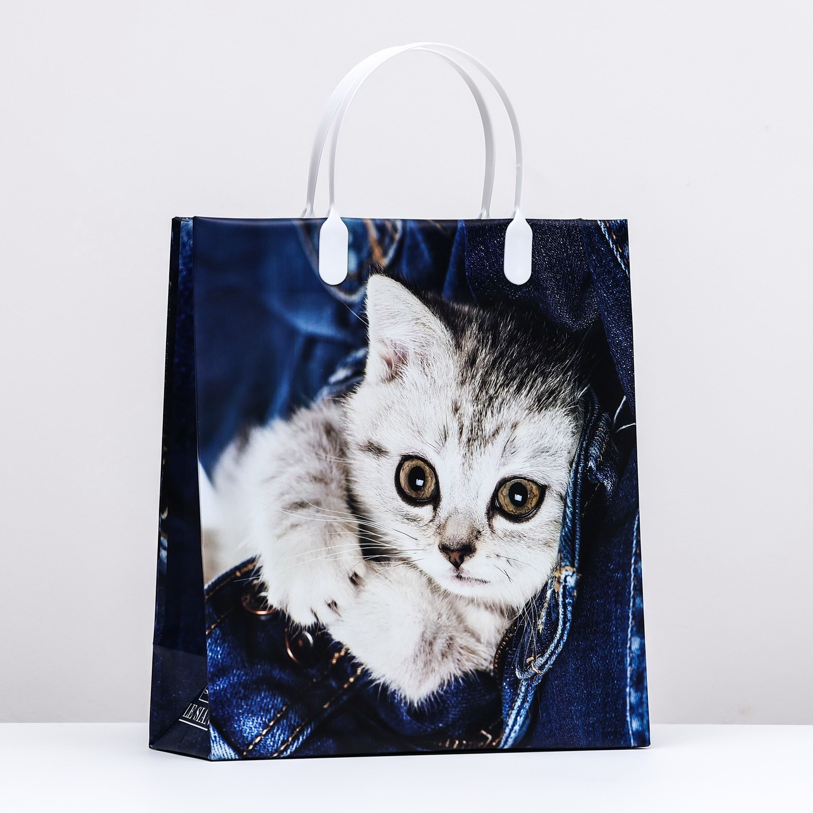 Пакет "Котенок на джинсах", мягкий пластик, 26 x 23 см, 110 мкм, Россия