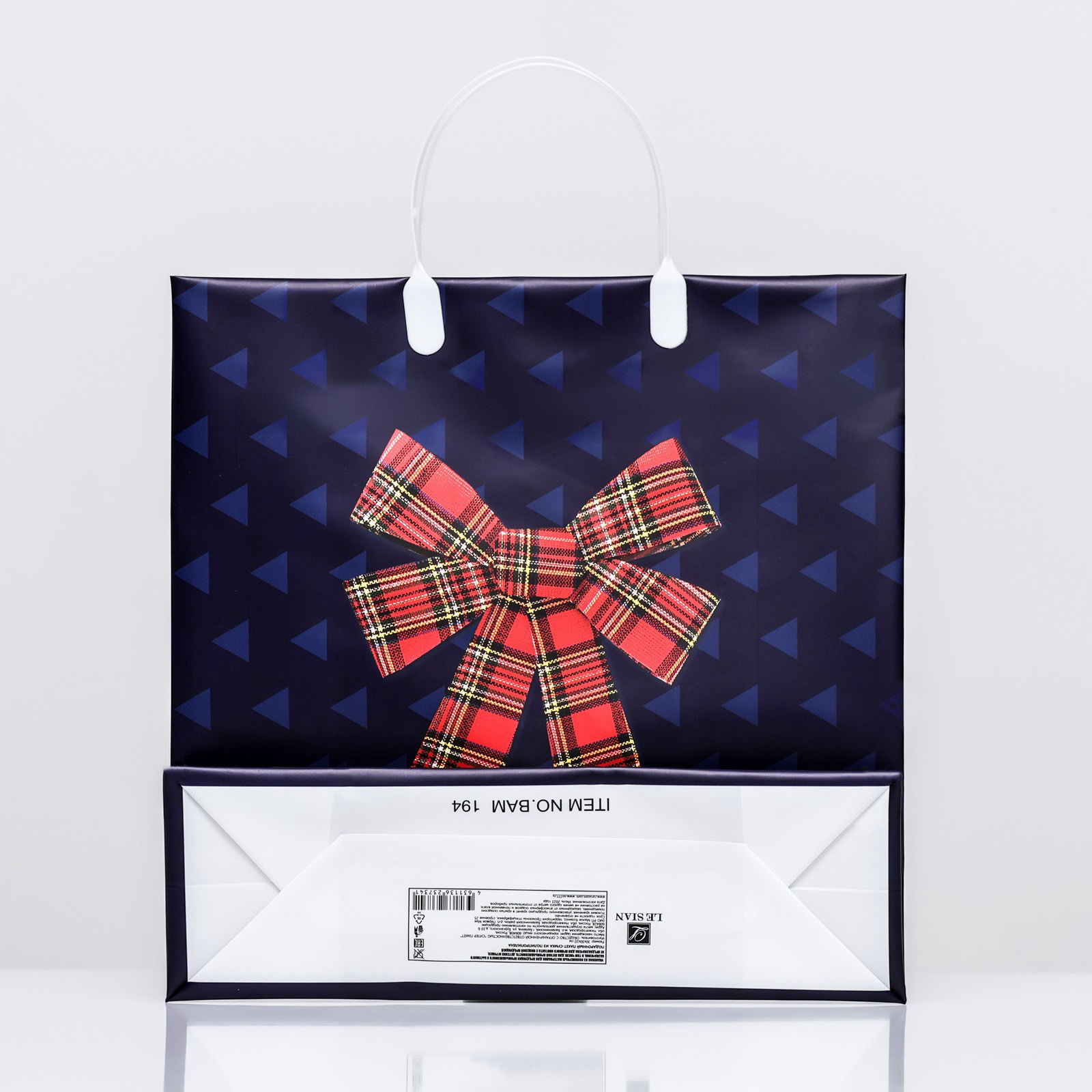 Подарочный пакет новогодний "Бантик на синем", мягкий пластик, 30x30 см, 120 мкм, Россия