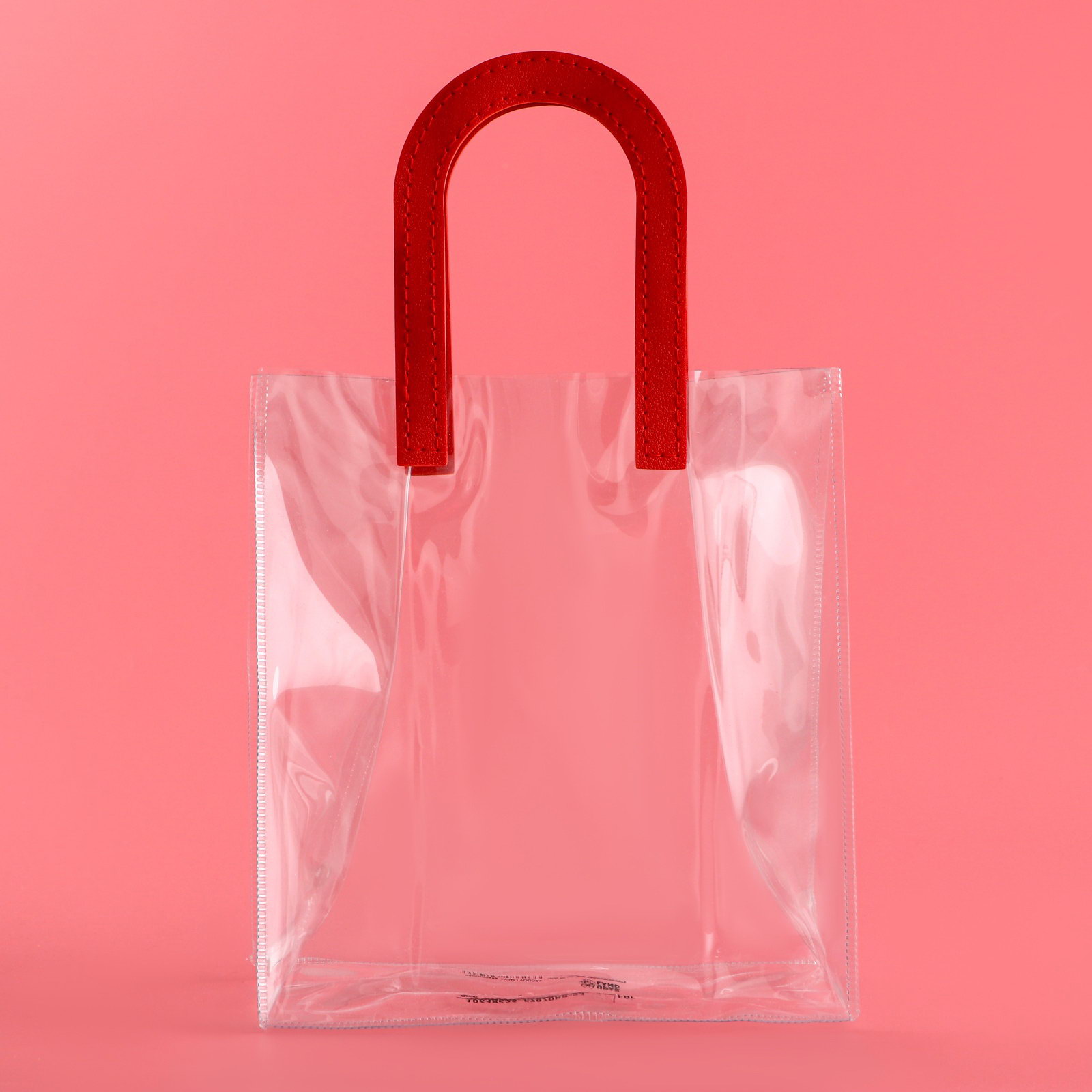 Пакет подарочный из ПВХ, прозрачный, красные ручки, 20x18x10 см, 18x20x10 см., UPAK LAND, Китай