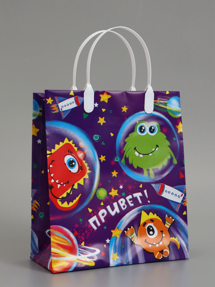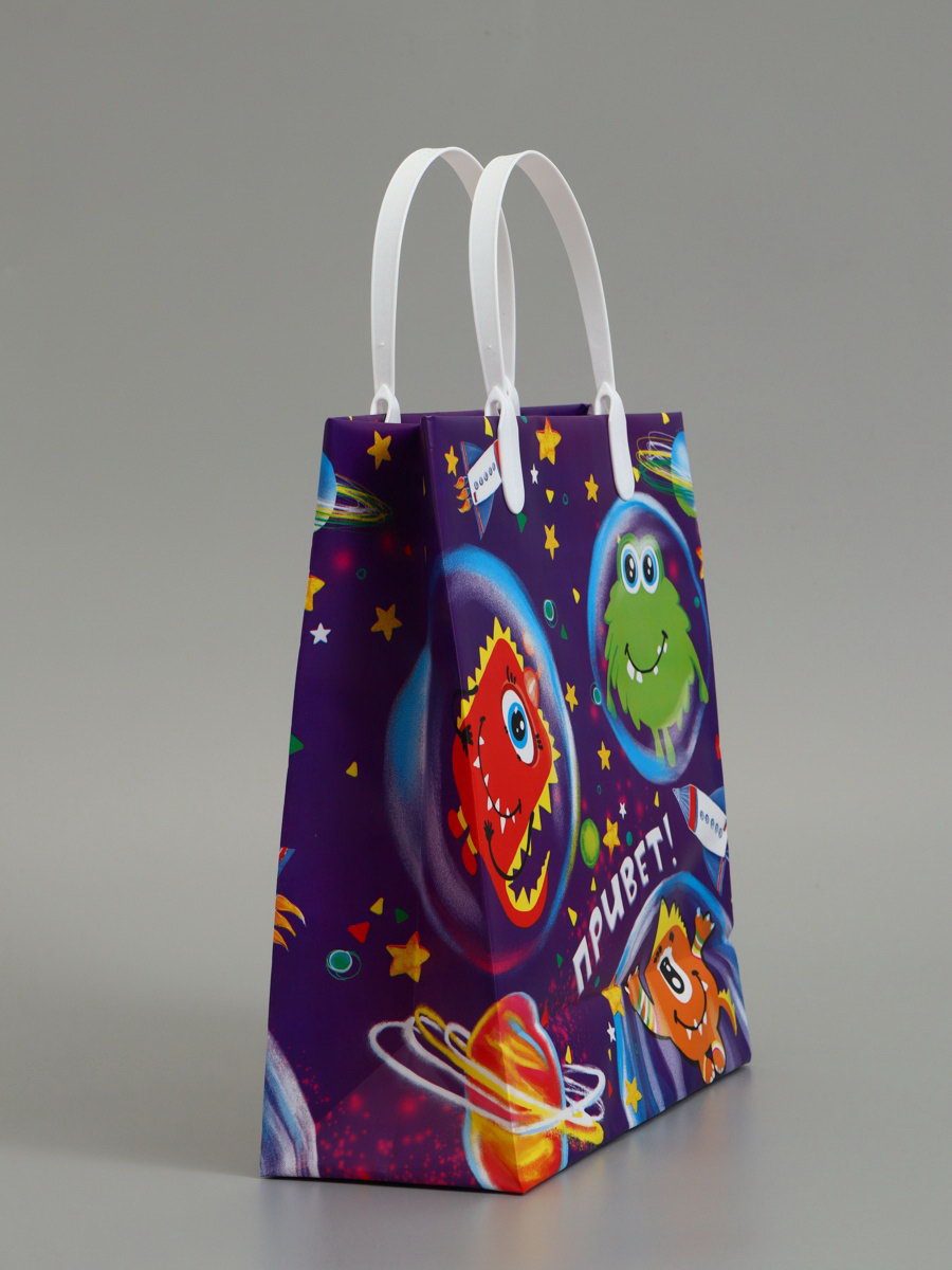 Пакет подарочный "Космик", мягкий пластик, 23x27 см, 150 мкм, Интерпак, Россия