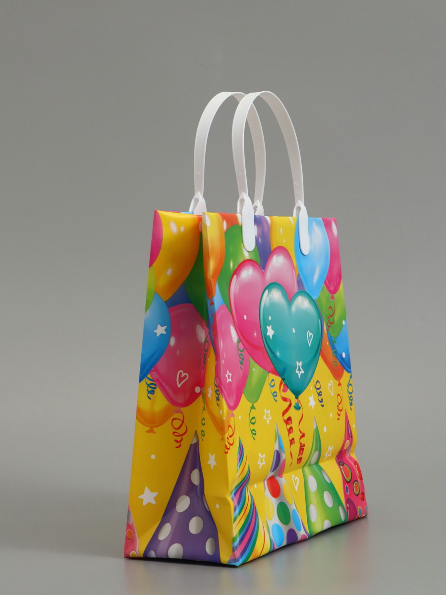 Тематика: Воздушные шары, Конфетти, Праздник, С сердечками Цвет: Жёлтый, Разноцветный Размер упаковки: 23 x 0.5 x 35 см. tnved: 3923299000 Температурное ограничение: Нет Дизайн: С рисунком, надписью Тематика праздника: День рождения Для кого: Унисекс Примерный размер: ML (~ 24см - 27см) Отделка пакета: Без отделки Вид ручки: Пластиковая Расширение: Боковая складка Символ года: Нет Рисунок: Да Толщина, мкм: 150 Жёлтый пакет с шарами и конфетти готовое праздничное настроение. Мягкий пластиковый пакет с боковой складкой "Сюрприз" создан для дня рождения. Тематика рисунка объединяет воздушные шары, сердечки, конфетти и праздничные надписи. Толщина 150 мкм делает упаковку надёжнее обычных подарочных пакетов. Размер ML (23x27 см) подходит для сладостей, небольшой игрушки, косметики или сувенира.